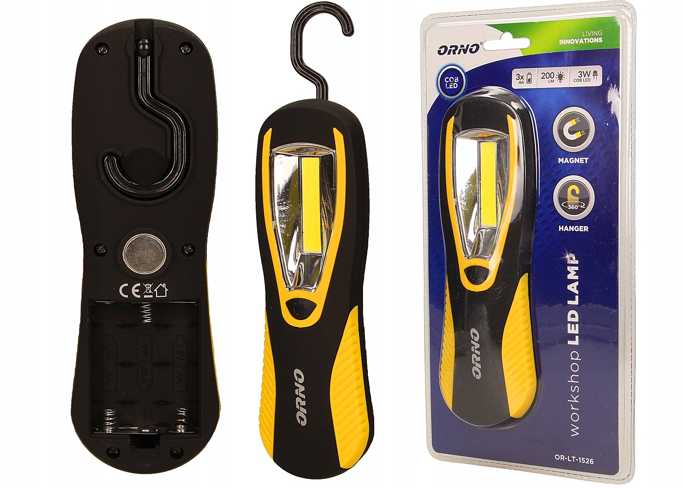 Світлодіодний ліхтарик майстерні COB 3W 200lm магніт гачок ORNO OR-LT-1526