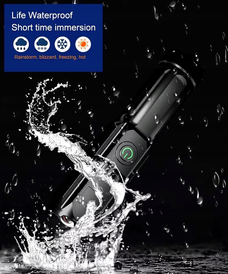 - Перемикач, захищений гумовою кришкою, а кільцеві кільця захищають ліхтарик від пилу та вологи.