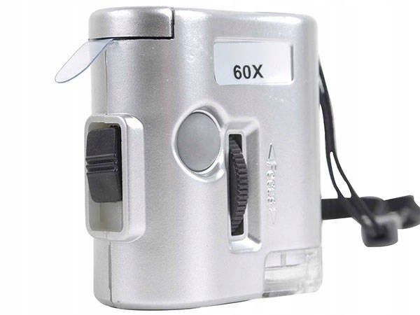 Кишеньковий мікроскоп із 60-кратним збільшенням із 2 світлодіодними діодами та УФ-ультрафіолетом дозволяє побачити найменшу подряпину чи відбиток пальця на руці. Це дозволяє побачити набагато більше, ніж це можливо неозброєним оком.