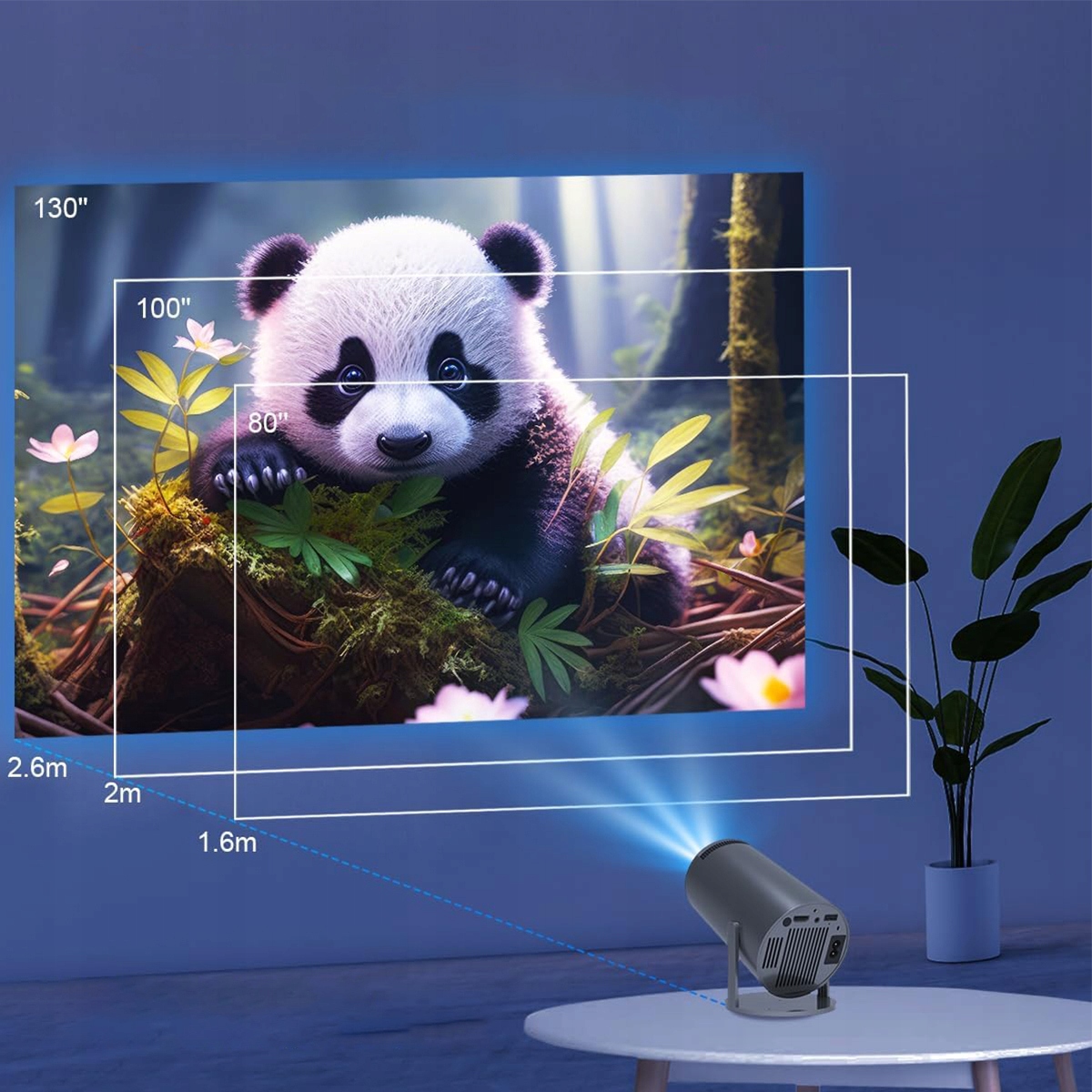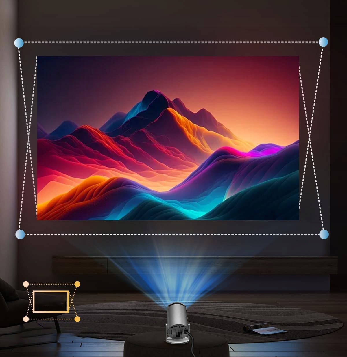 Проектор Transpeed оснащено функцією автоматичної корекції зображення, яка забезпечує оптимальну якість відображення. Можливість проектувати зображення з діагоналлю 40-130 дюймів дозволяє налаштувати розмір під різні кімнати та потреби, створюючи справжній домашній кінотеатр у будь-якому місці.