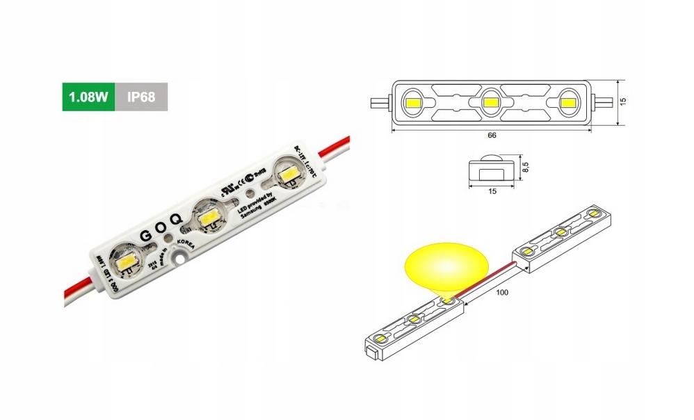 Модуль GOQ SAMSUNG 3xLED 150° Холодний білий 7500K 1,08 Вт/шт. 12 В постійного струму