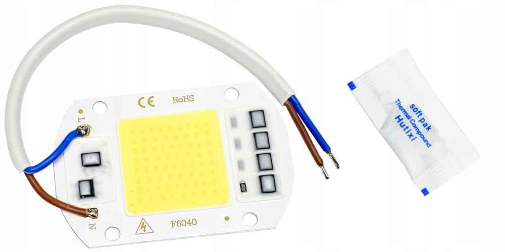 LED 50W 4700lm білий 60X 40mm 230v + провід + паста