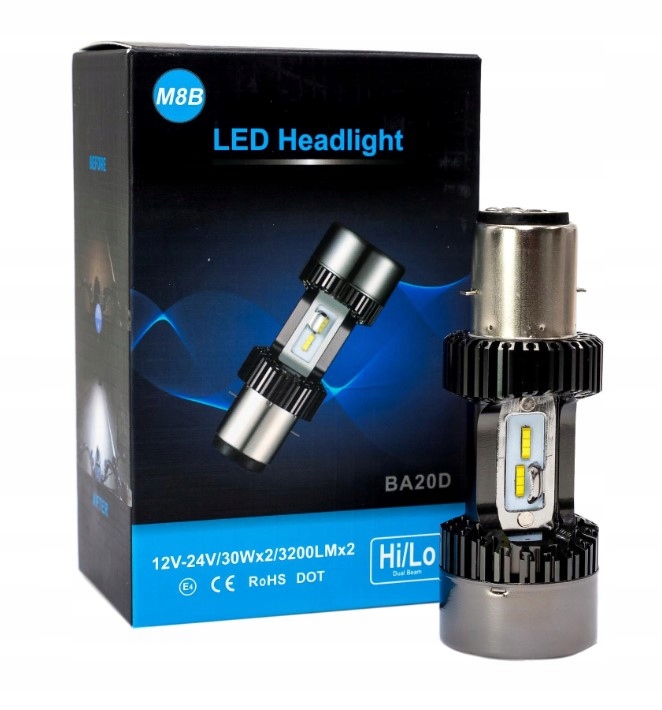 ba20d з прохідними вогнями та Дороги завдяки розміщенню діодів, як у традиційній лампочці. Він світить вдвічі більше, ніж традиційне, що надає світло, схоже на ксенонові фари.
