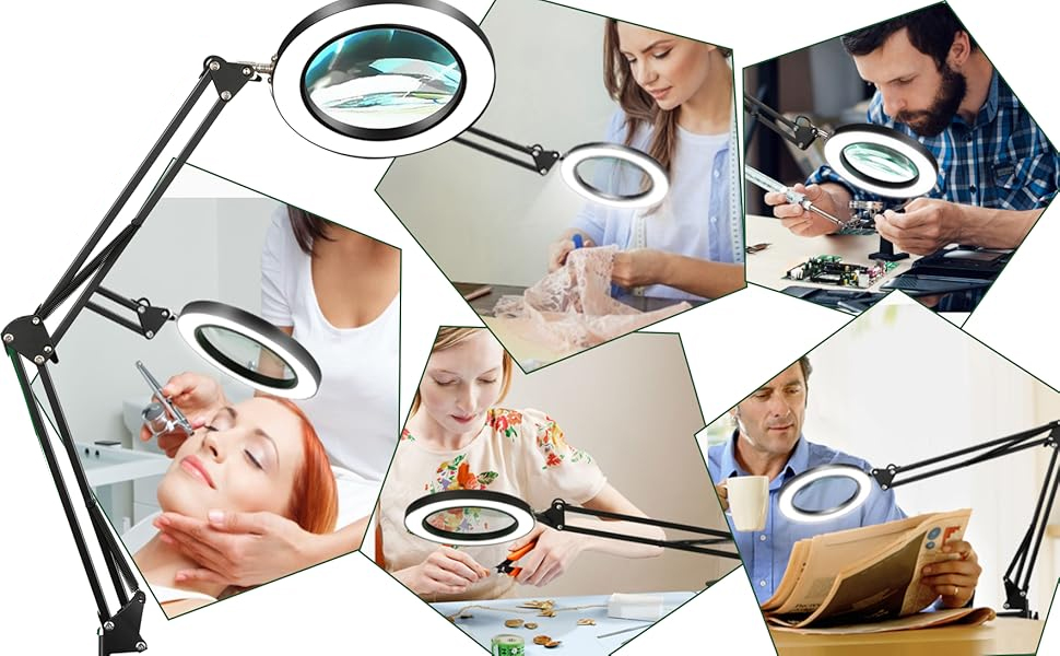 Dioptri, стійкий до подряпин, деформації та тепла. Поворотна рука дозволяє легко розташувати фокус і пропонує до 58 см вертикалі та регулювання рівня. Читання, ремесла, шиття, рукоділля, хрест -емброїд, головоломки та інші роботи.【3 кольорові режими та регулювання яскравості впертому】
