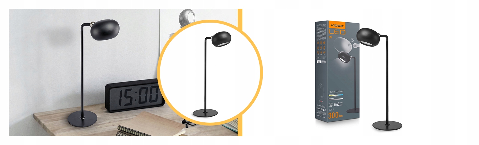 Світлодіодний настільний лампа завантажується Videx 300 Lumens акумулятор 1800 мАг чорний