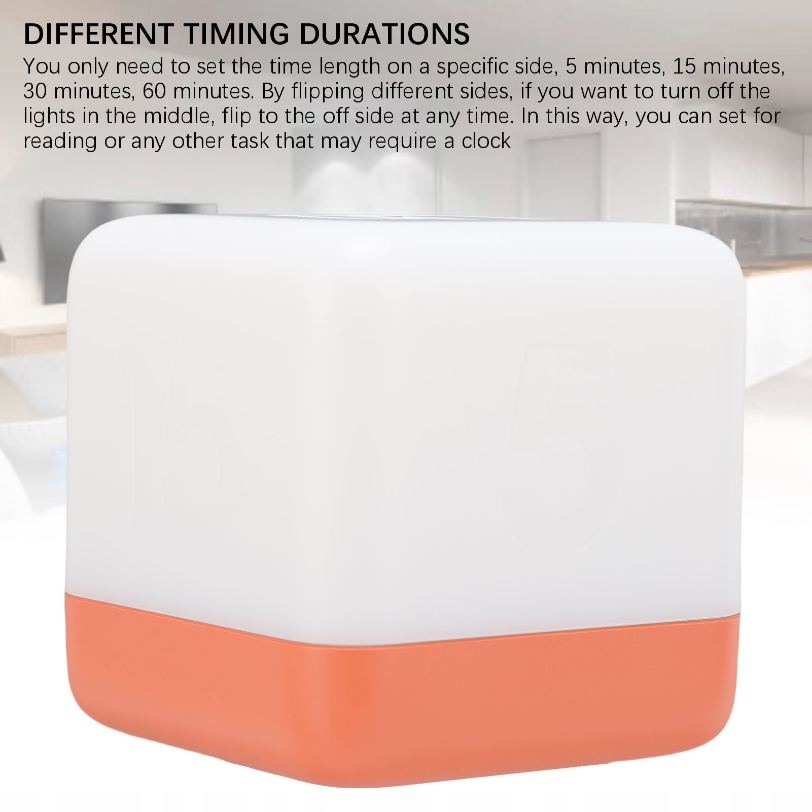 1. Практичний фліп-перемикач: фліп-дизайн дозволяє легко активувати, просто перекинувши куб, абсолютно безшумно. Коли перемикач увімкнено, його спрямованість вгору вказує на те, що світло ввімкнено, а вимкнення вгору означає, що світло вимкнено. Немає жодного натискання клавіші, достатньо лише одного повороту, щоб увімкнути світло, і ще одного повороту, щоб вимкнути його. Різні хвилини позначені на кожній із чотирьох сторін, а число, спрямоване вгору, означає тривалість таймера. Час також можна отримати простою інверсією