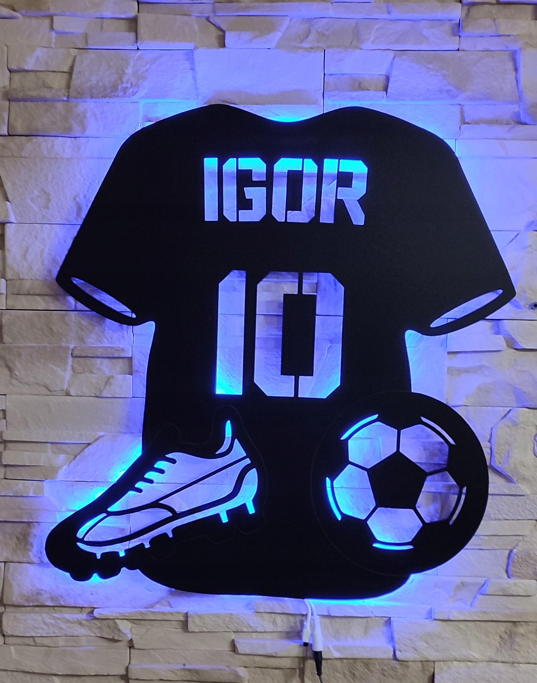 Світлодіодний футбольний НІЧНИК XL ІМЕННИЙ НОМЕР 52 см x 49 см + Пульт дистанційного керування + 2 безкоштовні м’ячі