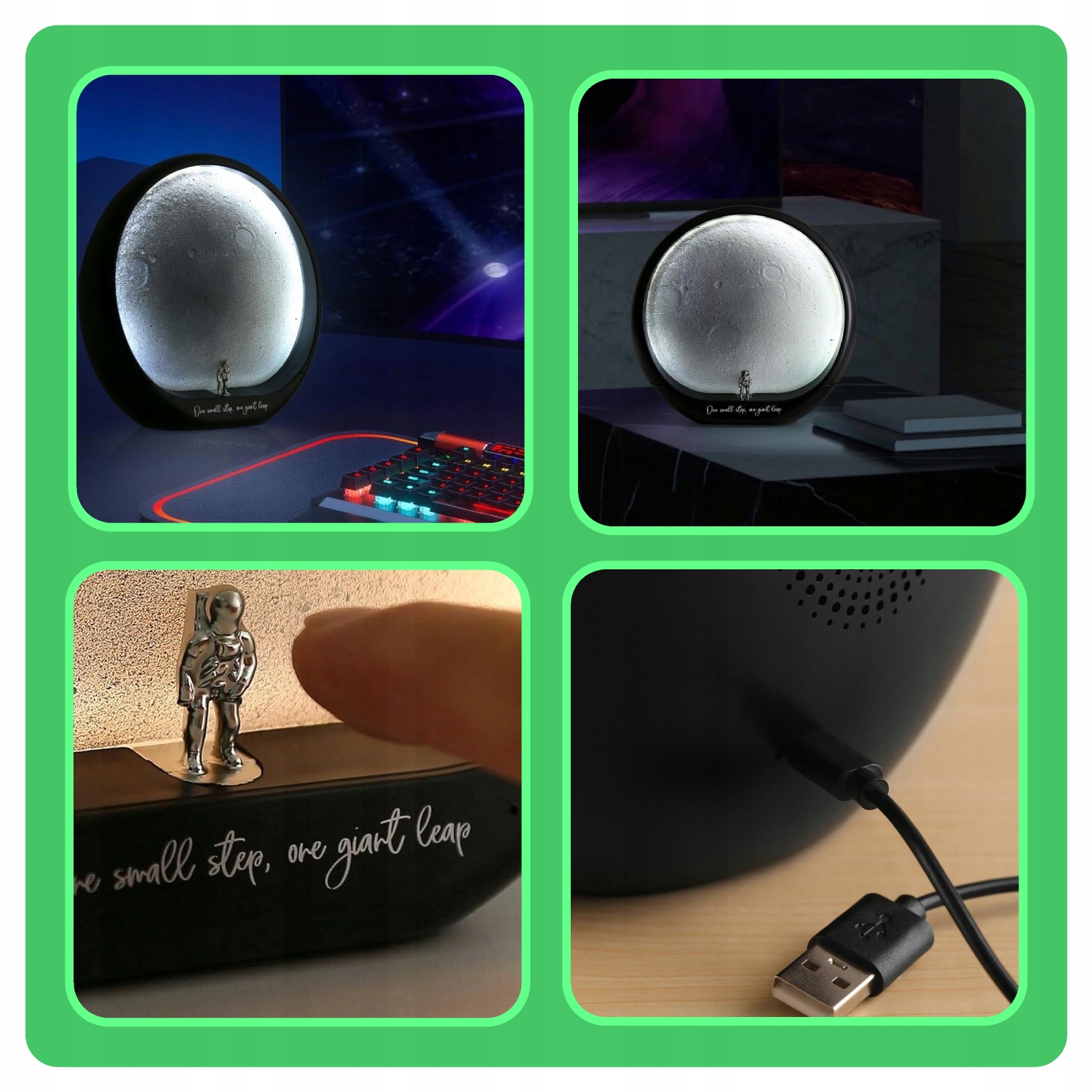 Ця тематична нічна лампа - ідеальна ідея подарунка для любителів простору та оригінальних прикрас. Напис «Один маленький крок, один гігантський стрибок» символізує сміливість і мрії про великі речі, що робить його надихаючим елементом декору.