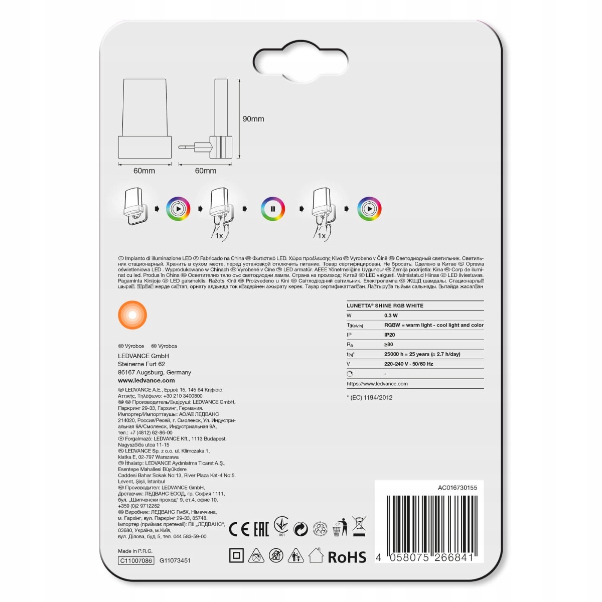 Нічник світлодіодний ОРІЄНТАЦІЙНИЙ LUNETTA Shine White 0.28W RGB IP20 LEDVANCE