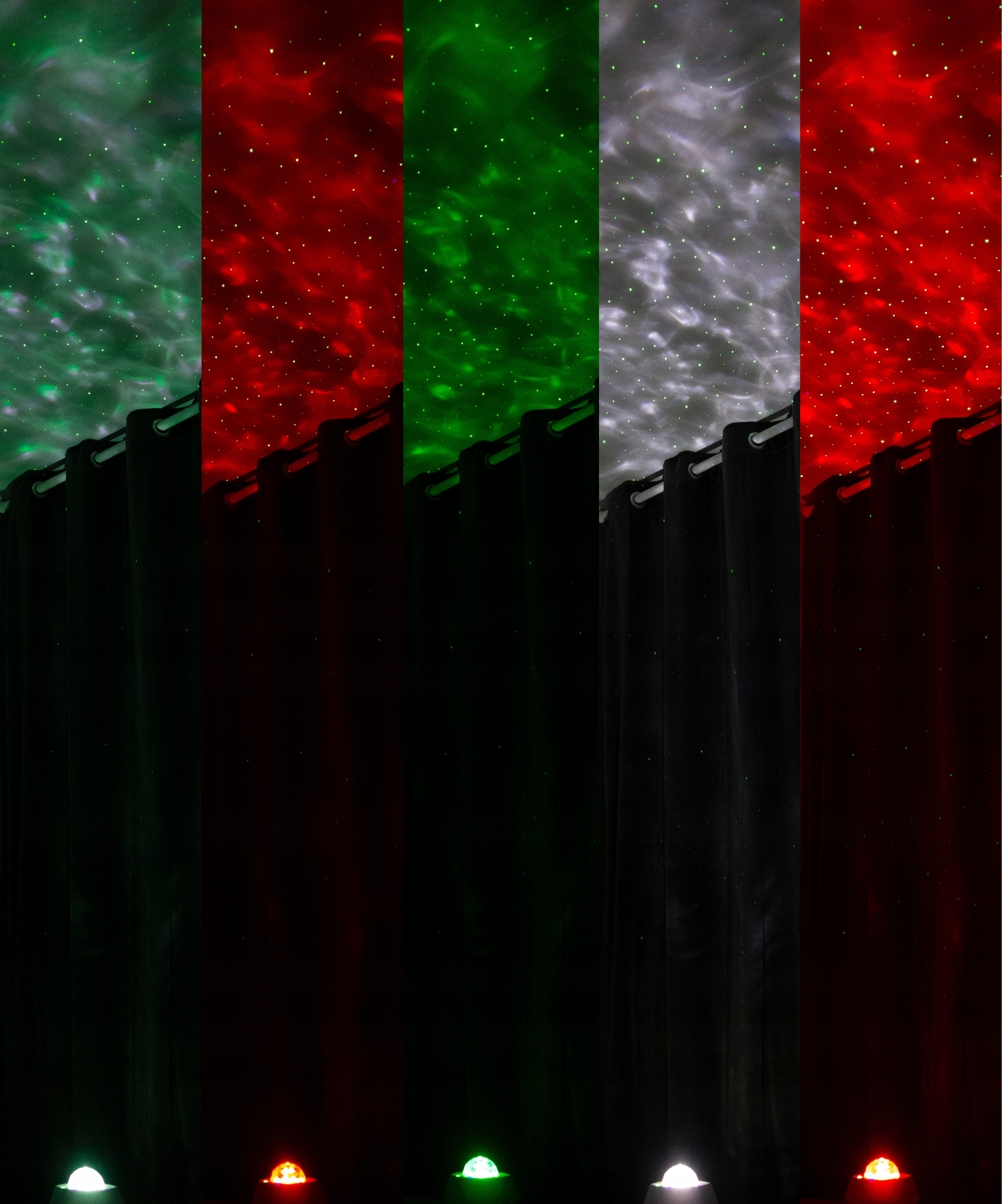 Проектор має багато вражаючих світлових хвиль, які, проектуючи їх на стіни та стелю, створюють реалістичне зоряне нічне небо, створюючи розслаблюючу та комфортну атмосферу та викликаючи бажання прогулятися серед зірок.