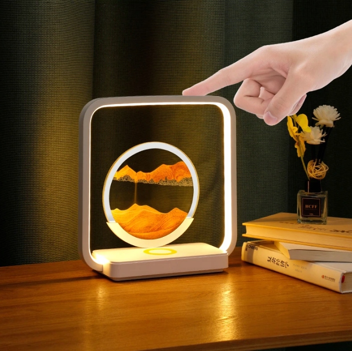 Світлодіодний нічник з бездротовою зарядкою, текучий пісок