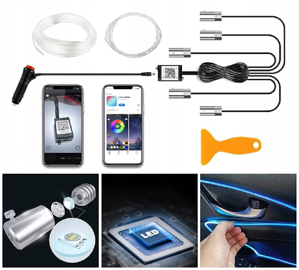 ✅ багато різних кольорів і функцій. 4 Світлодіодне освітлення дозволяє персоналізація інтер'єру автомобіля відповідно до переваг користувача. ✅ проста установка у внутрішній частині автомобіля.