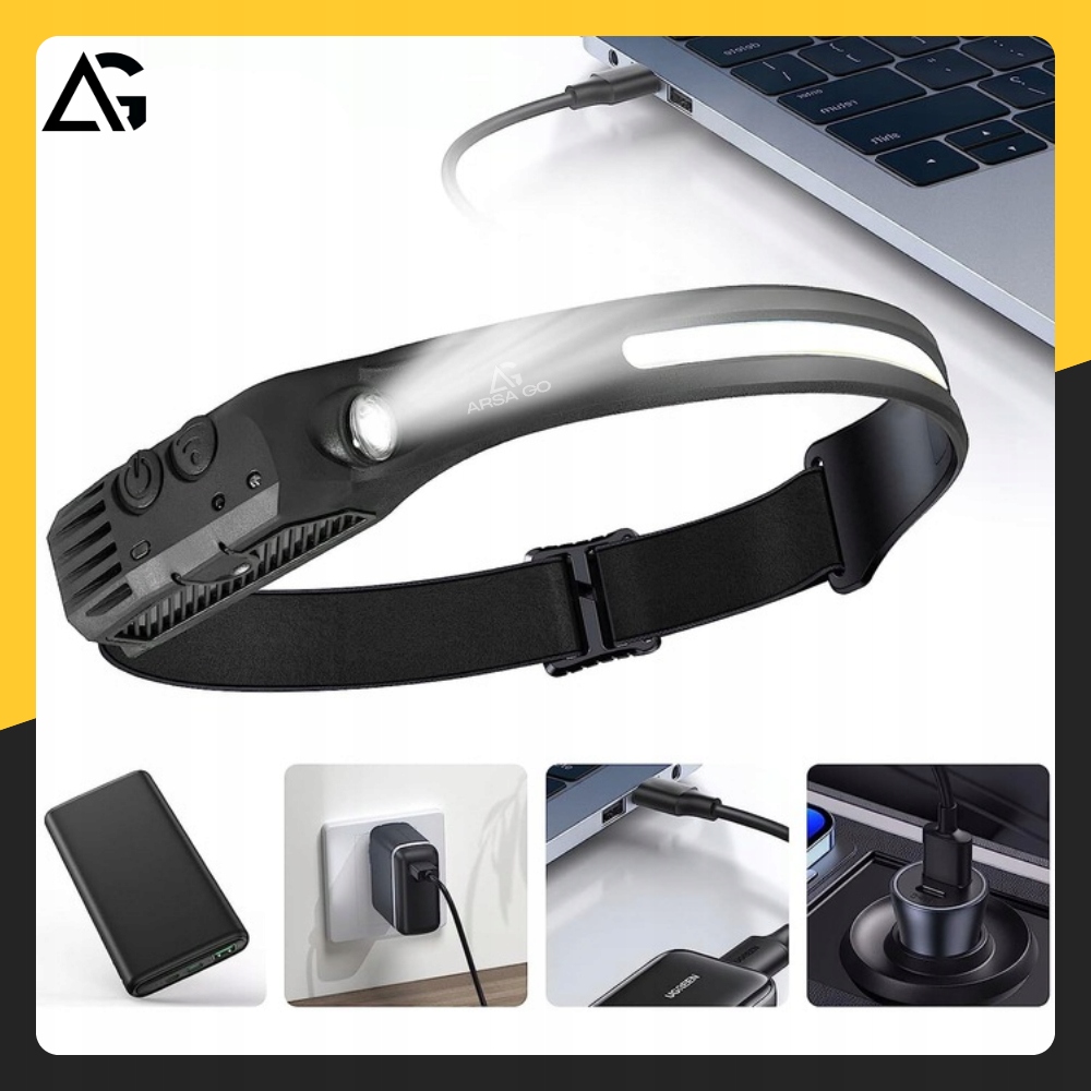 Світлодіодний передній ліхтарик 2IN1 Фара. USB -ремінь із датчиком руху