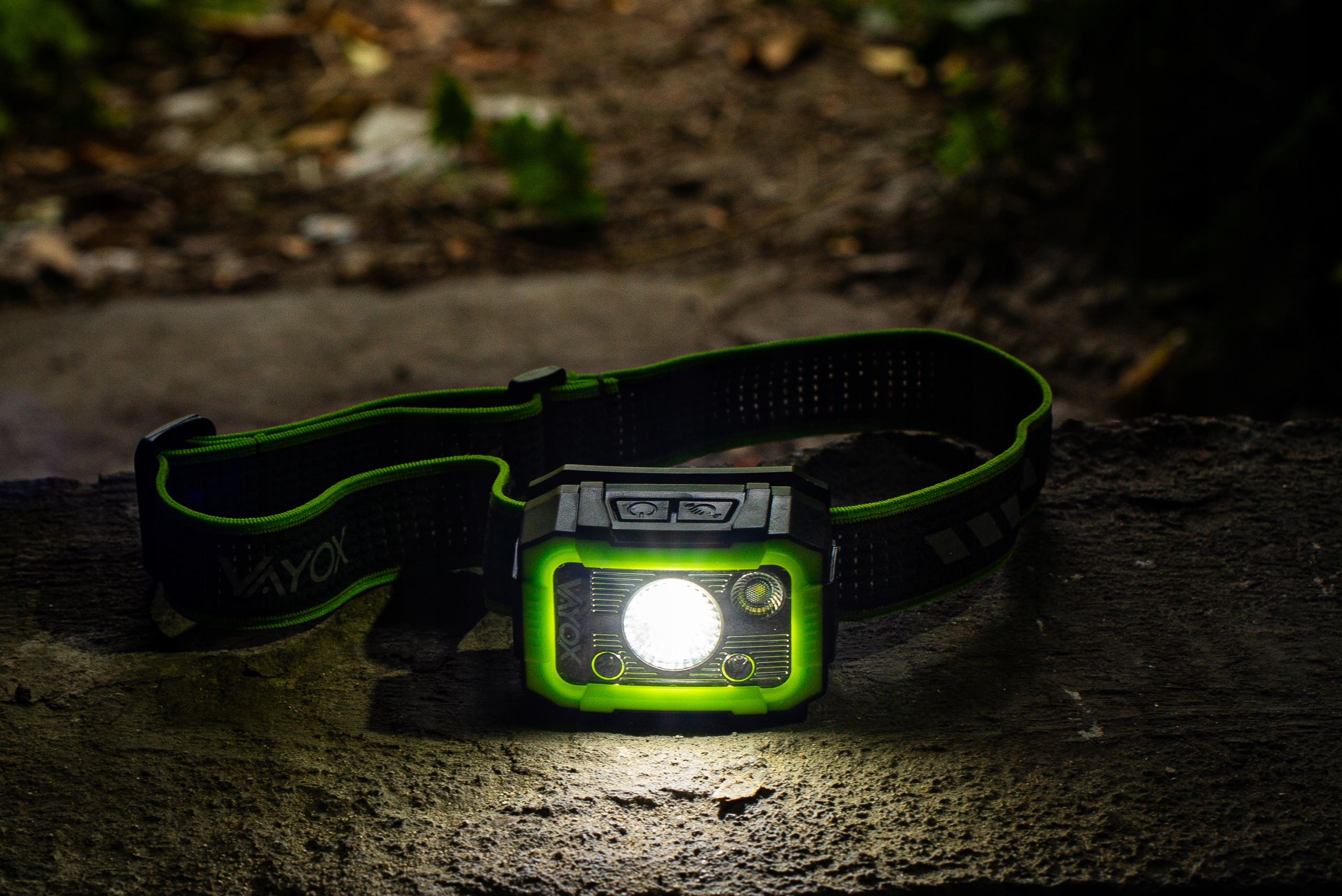 - Vayox передній ліхтарик з ємністю 750lum має 4 незалежні режими роботи та датчик руху. 4
