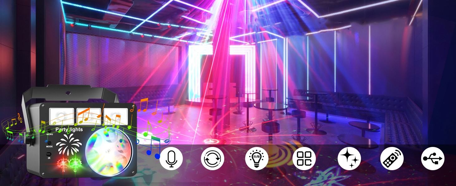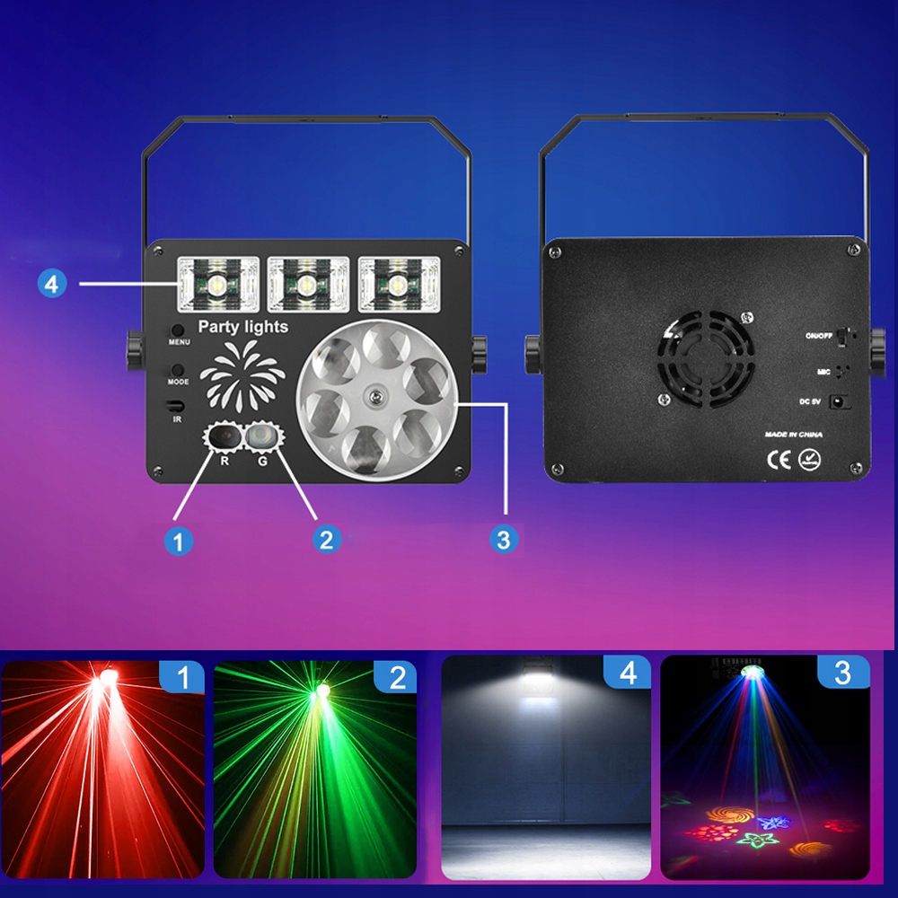 - Цей оновлений дискотечний ліхтар 3 в 1 містить обертовий стільниковий ліхтар, зелене та зелене світлодіодне світло та біле світлодіодне світло зі стробоскопом/УФ-хвилею.