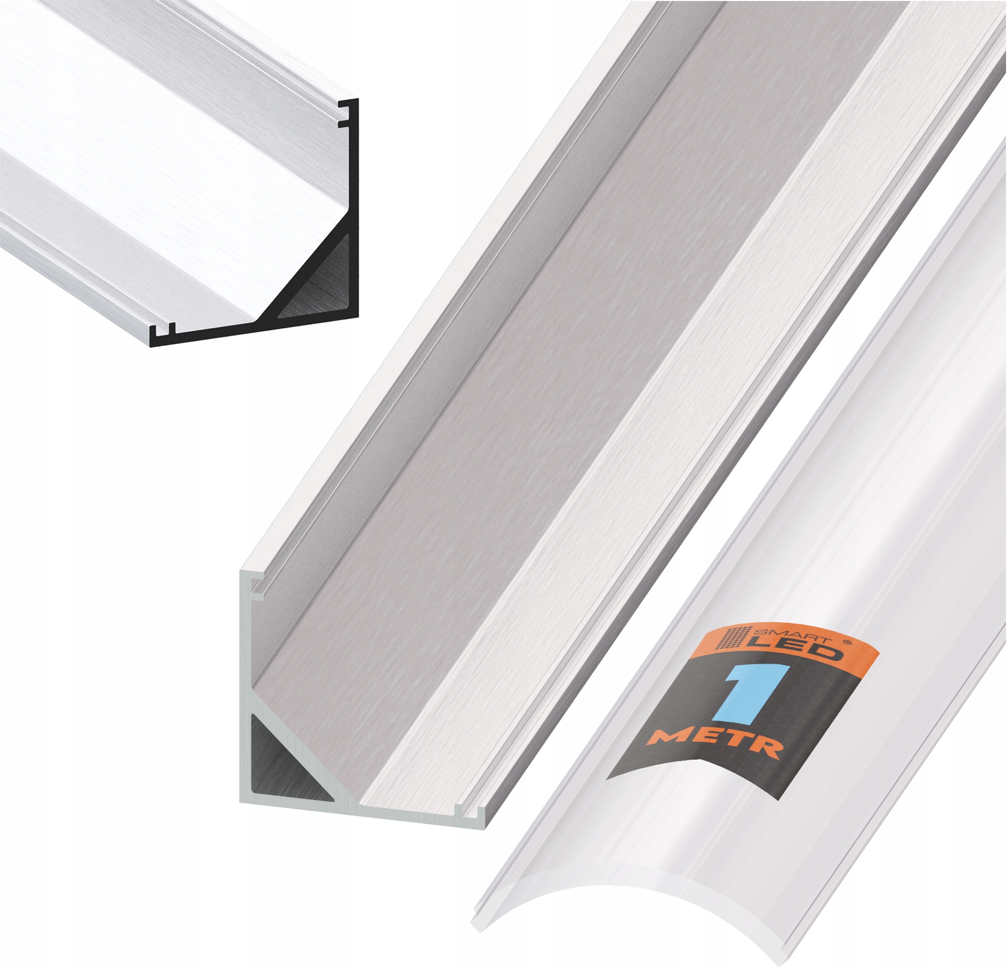 Алюмінієвий профіль для світлодіодних стрічок - кутовий 100см + прозорий абажур