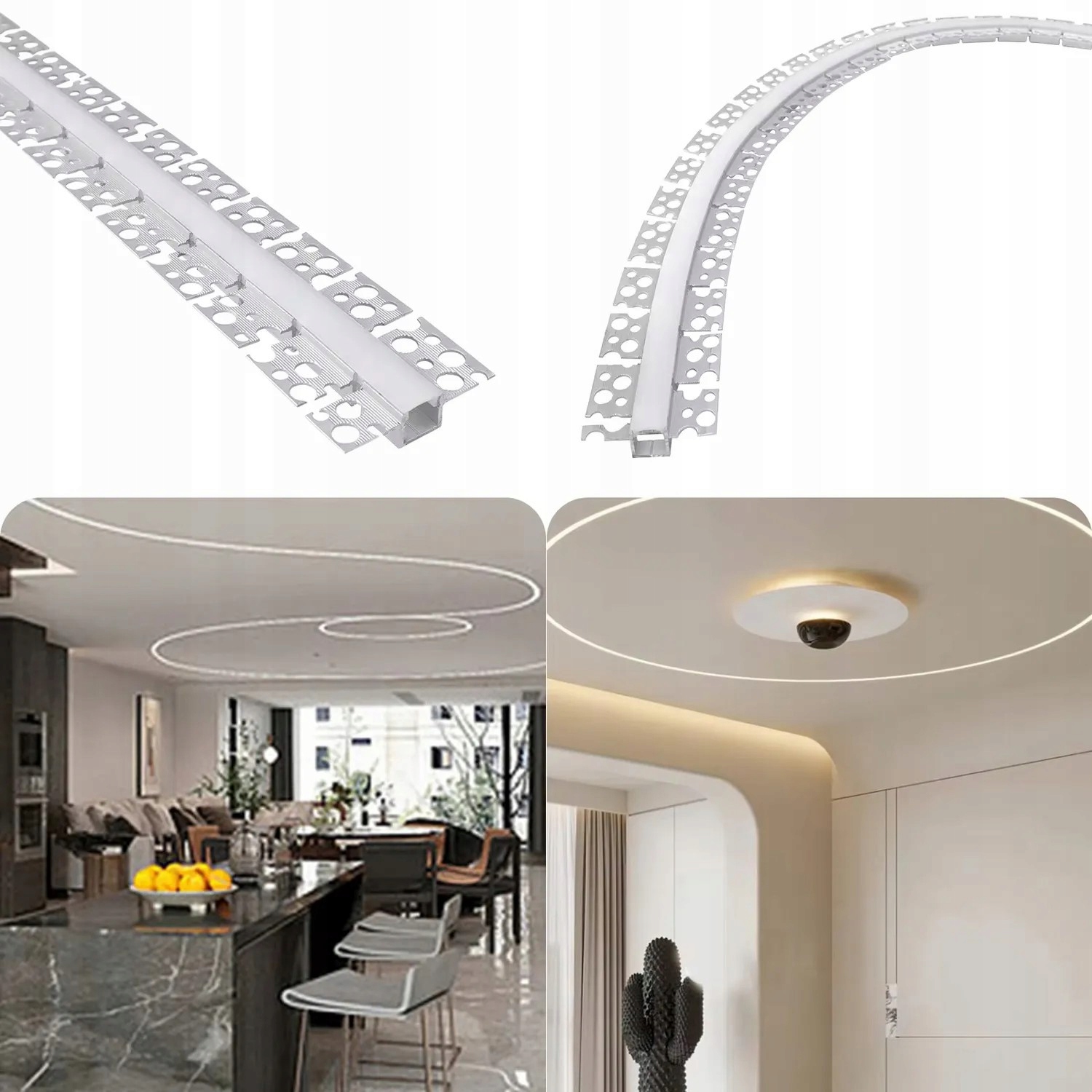 Гнучкий світлодіодний профіль FLEX призначений для монтажу в гіпсокартонні стелі, що дозволяє повністю інтегрувати його з поверхнею. У комплект входить не тільки сам профіль, а й опаловий абажур і торцеві заглушки, що ще більше полегшує процес монтажу і гарантує естетичне покриття.