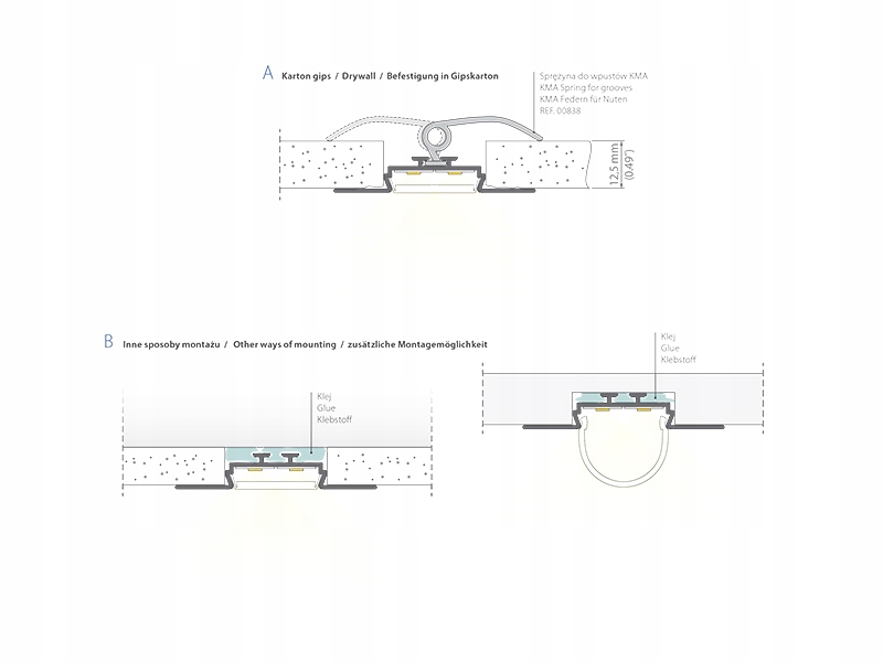 Модель OPAC-30 Відноситься до групи профілів для воронки, монтується між гіпсокартонними плитами і кріпиться за допомогою пружин КМА для воронки. Глибина профілю визначена для можливості монтажу в площинах невеликої товщини - від 9 мм.