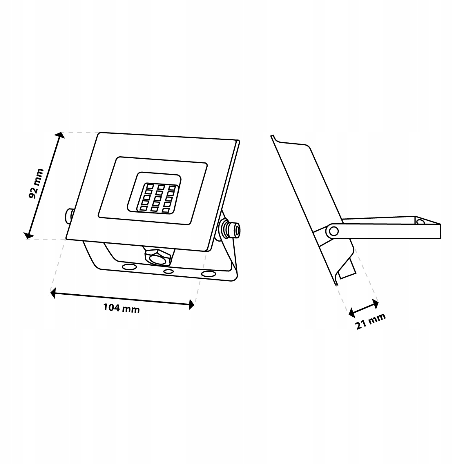 Світлодіодний прожектор оснащений енергозберігаючим світлодіодним джерелом світла потужністю 10 Вт і холодний колір світла з колірною температурою 6500 К, що дає освітленість на рівні 900 лм, що дає нам потужність світлового потоку 90 лм/Вт.