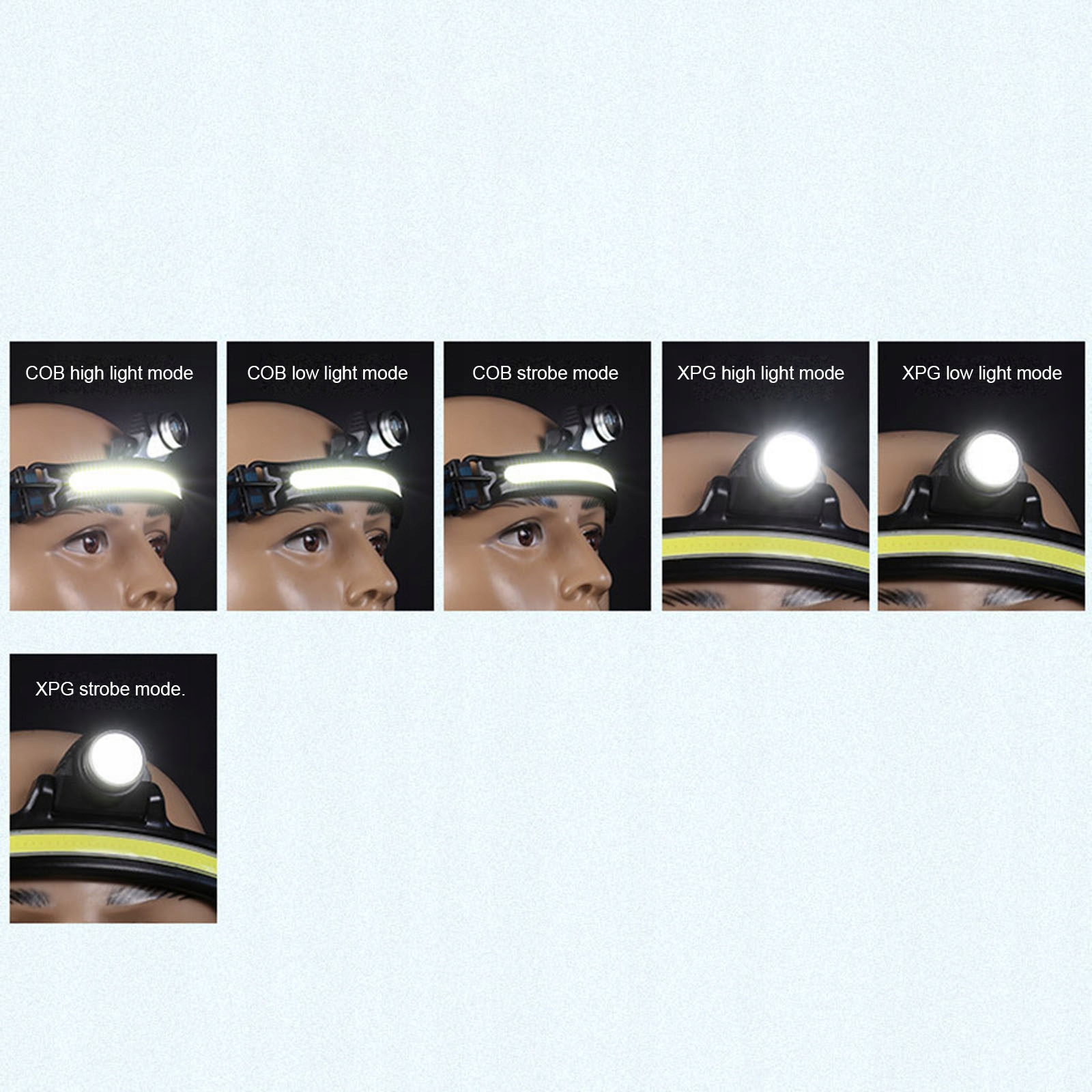 - 6 режимів освітлення: режим сильного освітлення, режим низького світла COB, режим стробоскопа COB, режим сильного освітлення XPG, режим слабкого освітлення XPG, стробоскоп XPG режим.