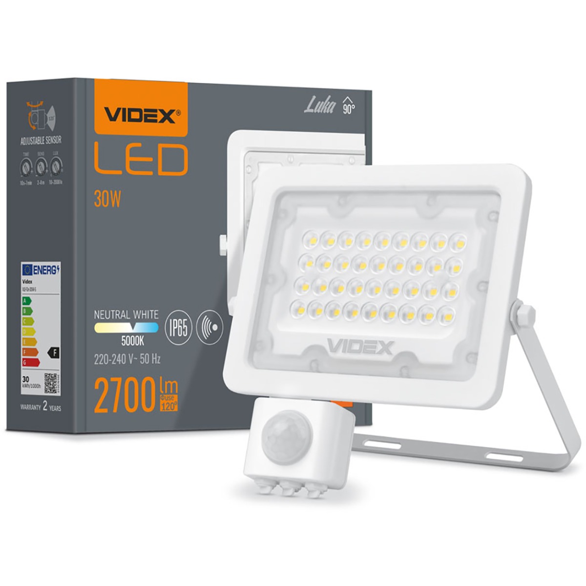 Luca Luca Ludive з датчиком руху та сутінків авторитетною маркою videx у білому - це сучасне освітлення, яке характеризується дуже хорошою якістю випромінюваного світла завдяки світлодіодній технології, високій міцності, стійкості до жорсткої погоди (водонепроникування). Оснащений сучасним та енергетичним світлодіодним джерелом з 30 Вт, випромінює сильний, нейтральний білий світло з кольоровою температурою 5000k, Отримання світла на рівні до 2700lm.