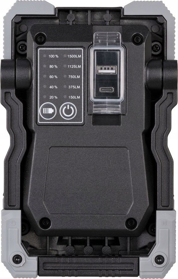 Лампа для майстерні з індикатором заряду, функція power bank для зручної зарядки наприклад, смартфони (роз’єм для заряджання типу C) і стійка багаторівнева складна рама.