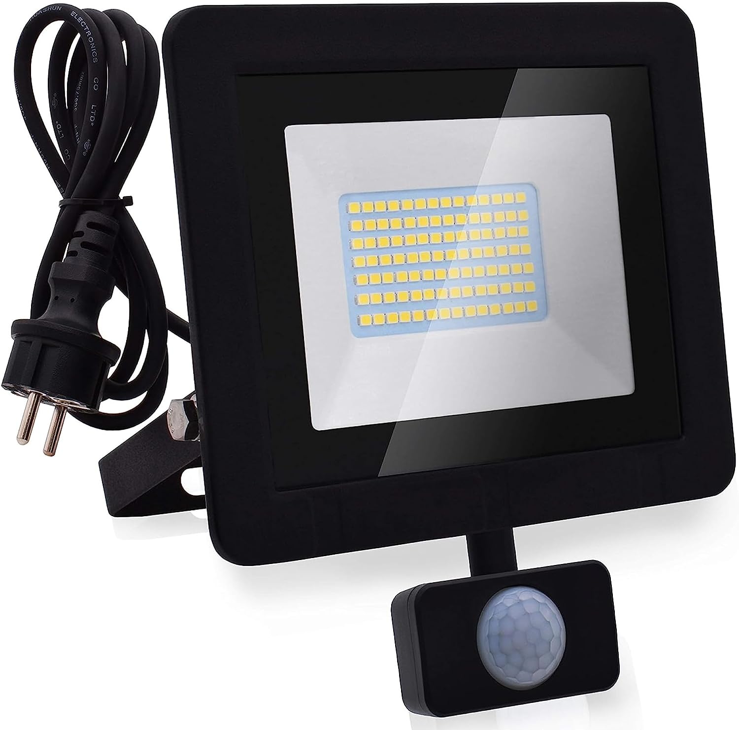 Світлодіодний прожектор Lumare 50 Вт з датчиком руху та вилкою | зовнішня та внутрішня світлодіодна лампа | IP65, 5000 лм | міні рефлекторна лампа | замінює лампочки потужністю приблизно 350 Вт | колірна температура 3000 K теплий білий [клас енергоспоживання F]