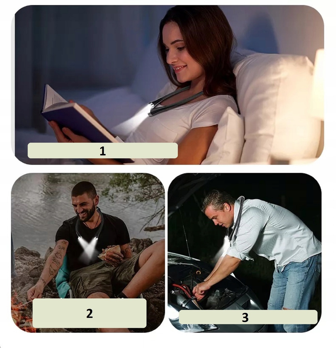 Просто повісьте лампу для читання на шию, зігніть руки, щоб висвітлити те, що ви хочете. Щоб зробити читання комфортнішим, ви можете змінити колір, інтенсивність освітлення або вимкнути одну з лампочок. Ця надзвичайно зручна лампа для читання дозволяє вам зосередитися на книзі, телефоні чи іншій справі. Вам не потрібно хвилюватися, що світло, яке ви використовуєте, заважатиме іншим. Лампа дуже легка і зручна, ви відразу забудете, що вона на шиї.