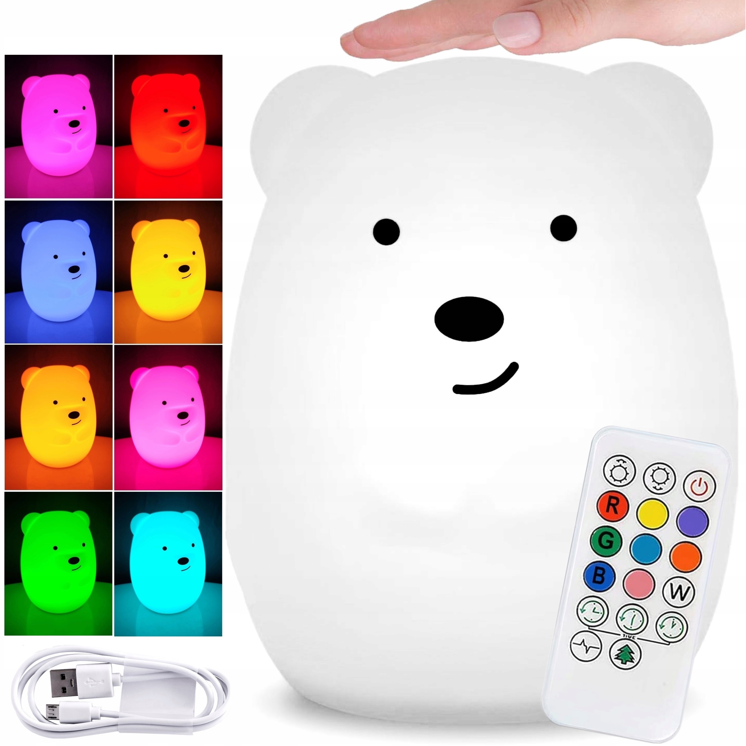 Світлодіодна нічна лампа Teddy Bear, керована дистанційним керуванням, кольорове світло, таймер, дитяча кімната