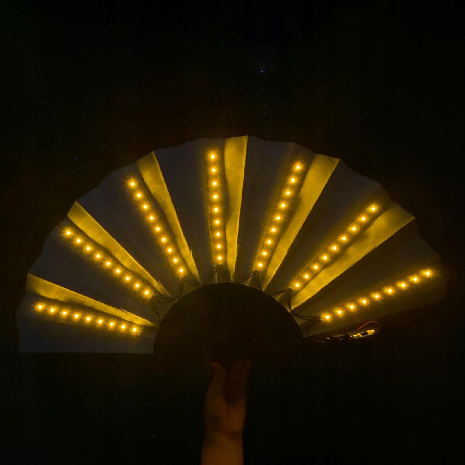 : ВИСОКО: Світлодіодний складаний віяло виготовлено з високоякісної шовкової тканини та дерева ІДЕАЛЬНИЙ ДИЗАЙН: Віяло, що світиться, дуже яскраве Це дуже прохолодна атмосфера: світло має прозоре заломлення Продукт не постачається з батареєю ЗАСТОСУЄМО : підходить для вечірок, таких як клуби, костюми на Хелловін, костюмовані вечірки, концерти тощо ДЕКОРАЦІЯ: можна використовувати як прикрасу для різноманітних фестивалів, весіль, сценічних постановок, танцювальних виступів