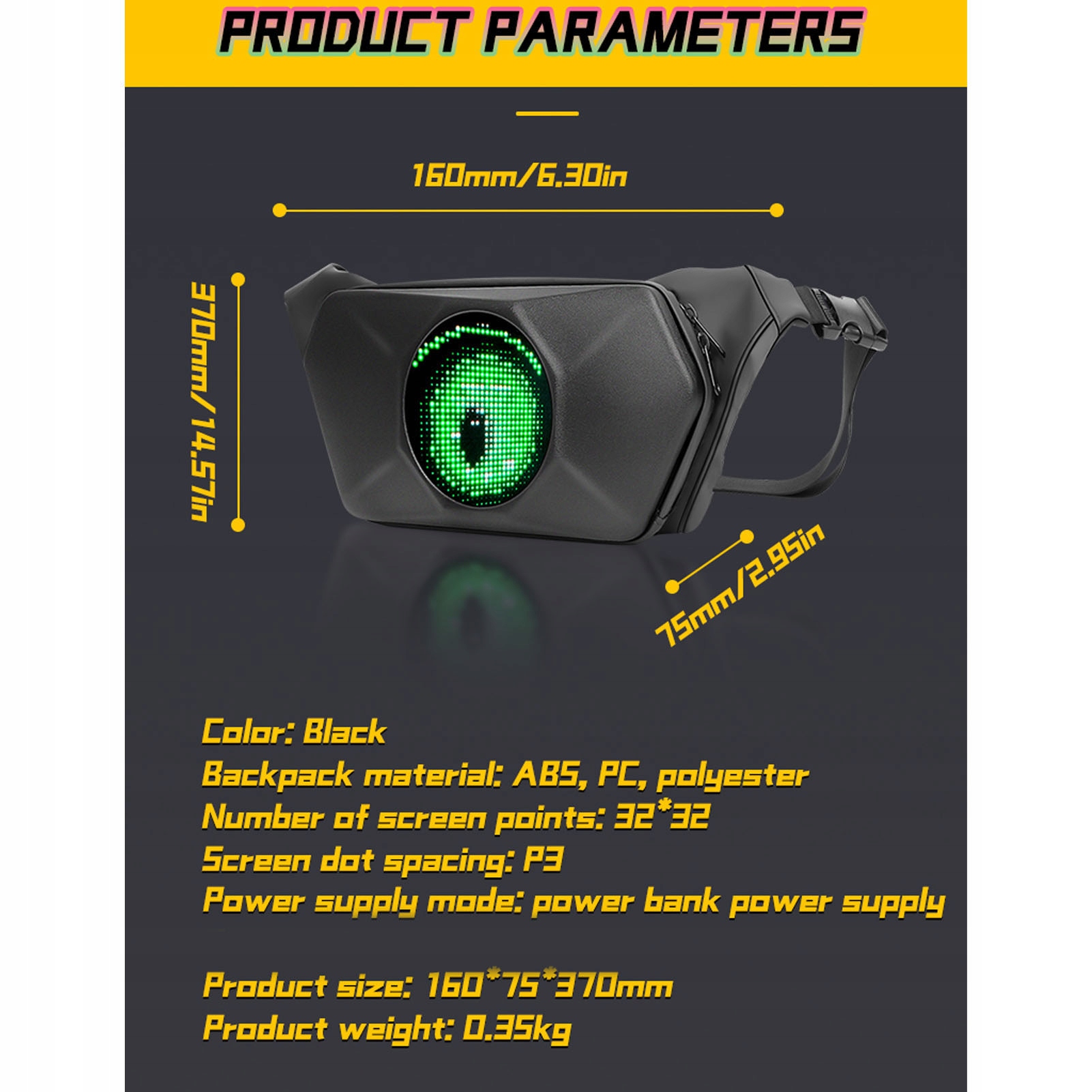 4. Простий у використанні: Просто підключіть сумку з світлодіодним конвеєром до мобільного джерела живлення (не входить), завантажте додаток Spoted (сумісний з системами Android та iOS) на телефон та підключіться до рюкзака, щоб налаштувати та налаштувати світлодіодний дисплей. Прості в відстеженні інструкції роблять світлодіоду до конфігурації конфігурації світлодіодної сумки.