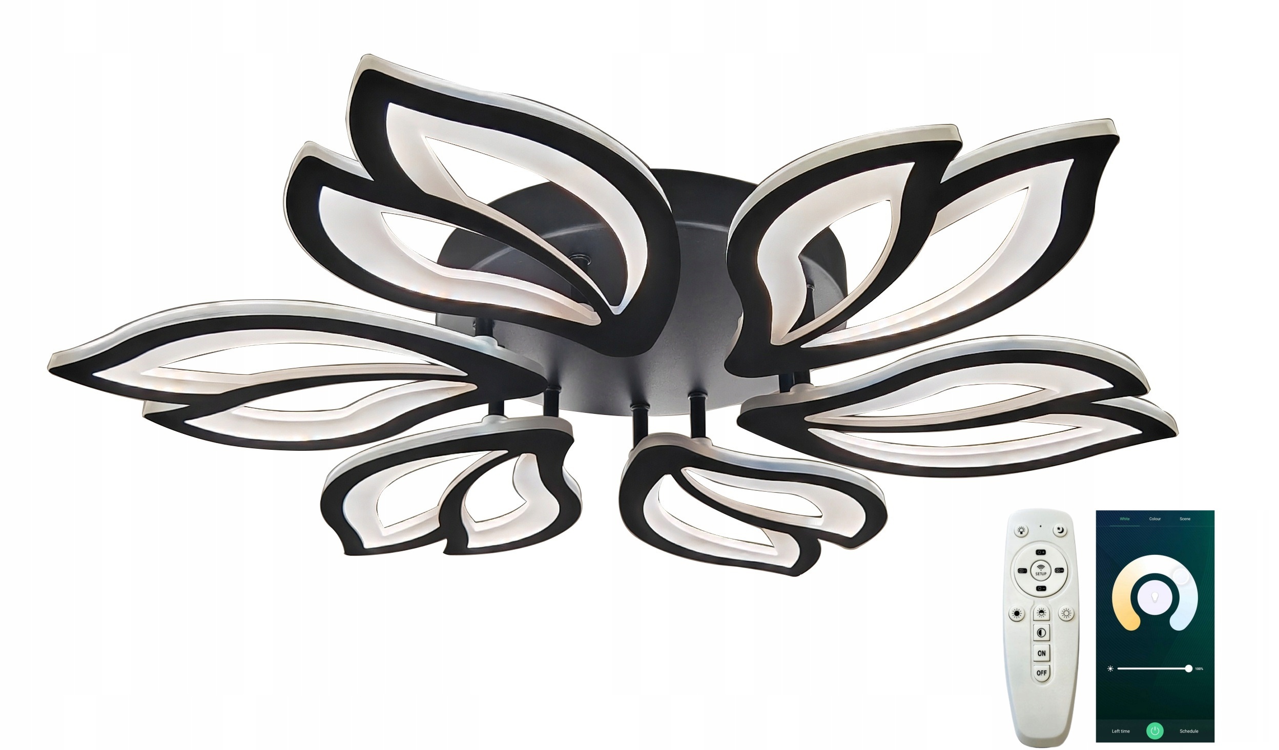 СВІТЛОДІОДНИЙ СТЕЛЕВИЙ СВІТИЛЬНИК ЧОРНА ЛЮСТРА 48 ВТ З РОЗУМНИМ ДОДАТКОМ ДИСТАНЦІЙНОГО КЕРУВАННЯ 6 КВІТОК 65 СМ