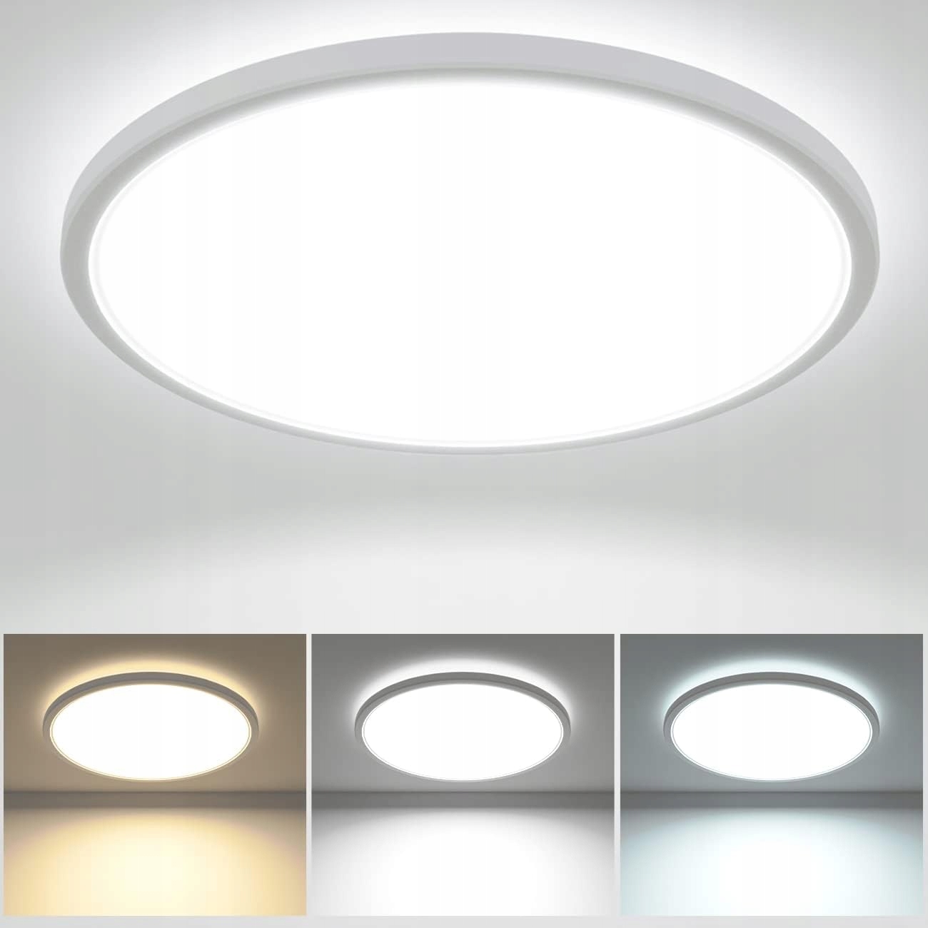 ✅⭐Світлодіодний стельовий світильник Zemty, 28 Вт, 3200 лм, плоский, 29,5 см, 3 кольори, 3000/4500/6000 K, ультратонкий стельовий світильник, стельове освітлення для ванної, вітальні, кухні, спальні [Клас енергоспоживання F]