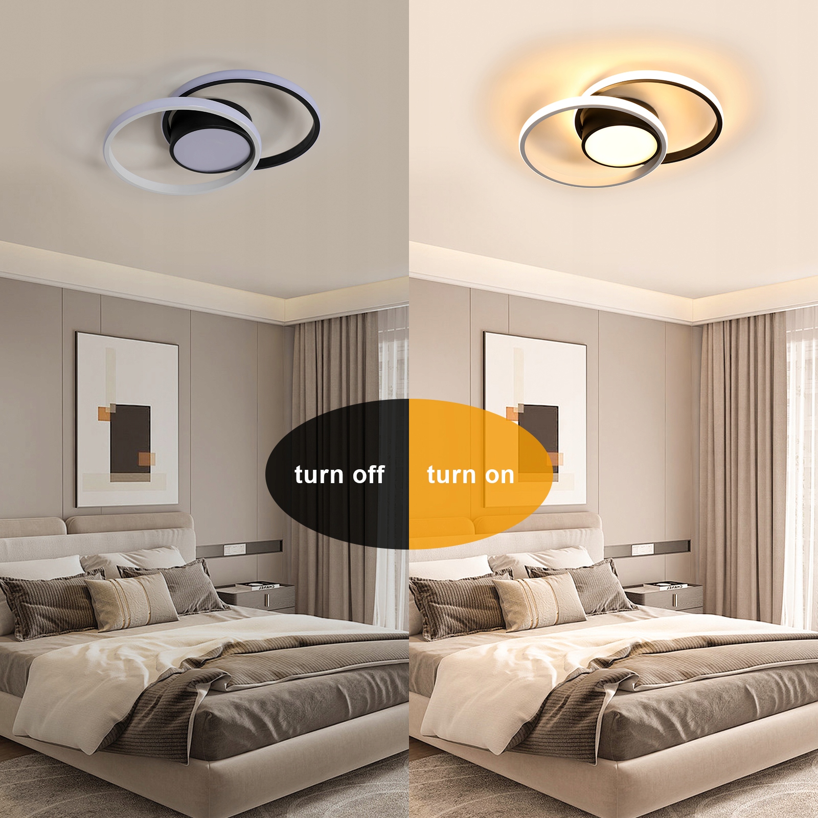 - Сучасний світлодіодний стельовий світильник має подвійний круглий хрестоподібний дизайн, унікальну форму, виразне відчуття дизайну та простий зовнішній вигляд, випромінюючи чарівну атмосферу, додаючи нову атмосферу до прикраси вашого дому.