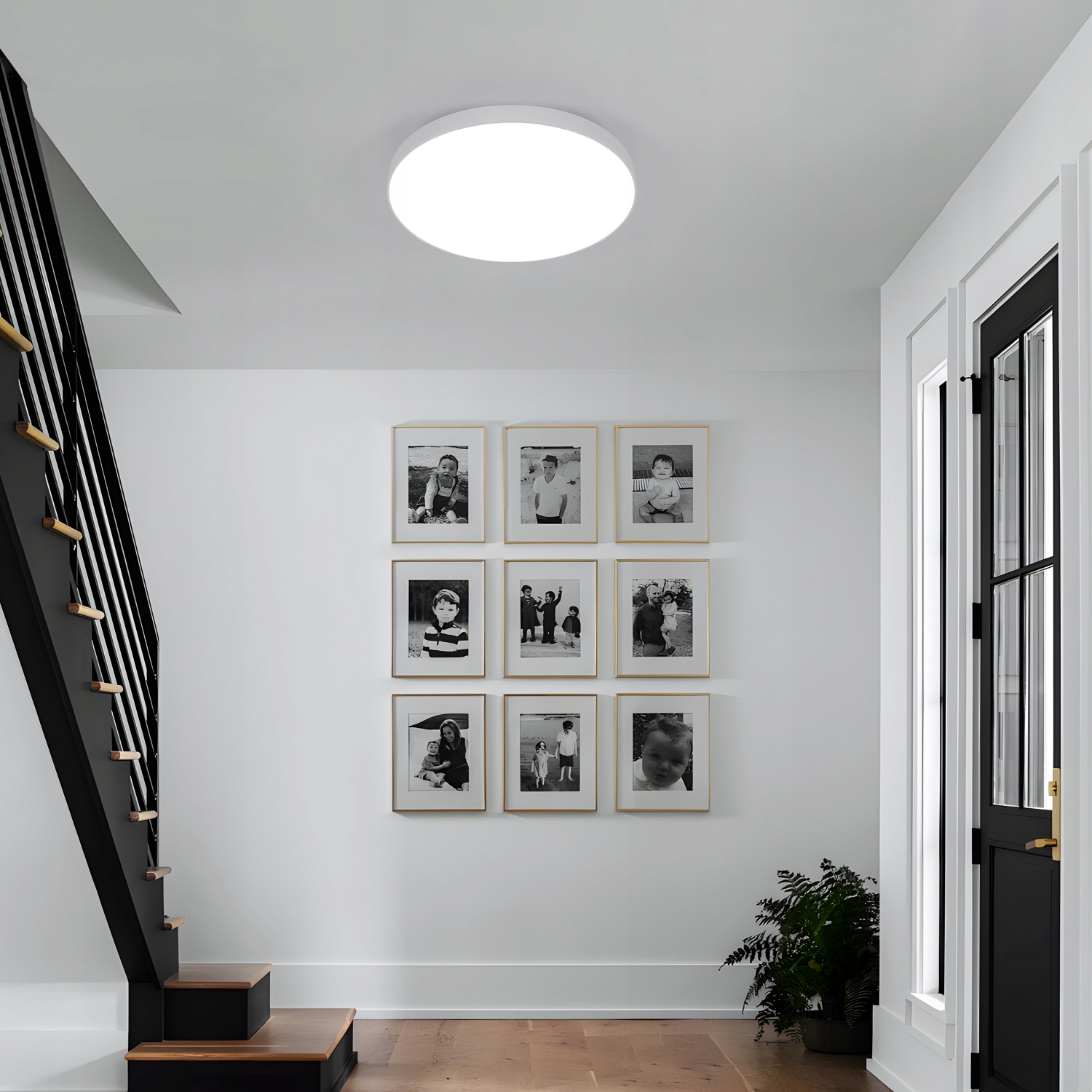 Цей світлодіодний стельовий світильник випромінює яскраве рівномірне світло, ідеальне для функціональних приміщень, таких як кухні, офіси, сходи та підсобні приміщення. Його холодний білий світлодіодний стельовий світильник покращує видимість, що робить його практичним вибором для робочого освітлення або загальної яскравості в компактних приміщеннях.