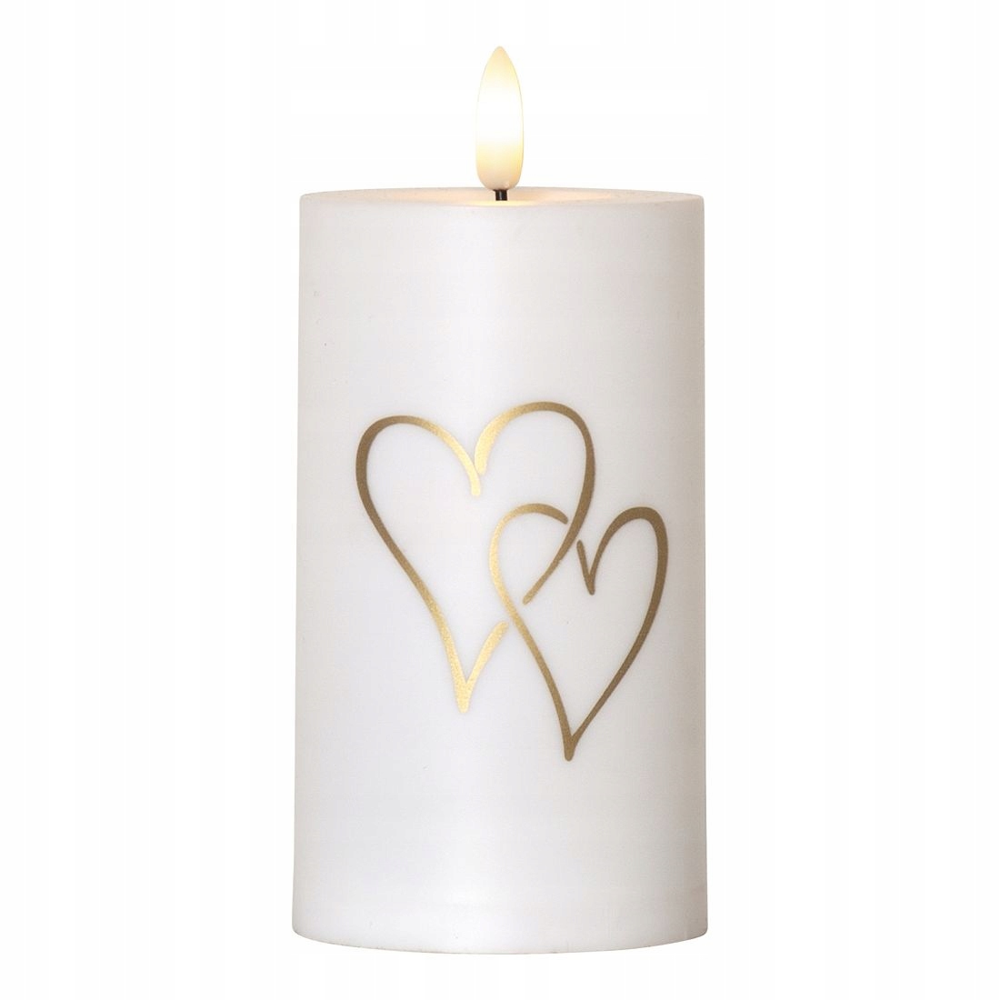 Додайте теплий, примхливий акцент до свого оточення завдяки світлодіодній свічці, прикрашеній золотими серцями та реалістичним ефектом палаючого полум'я. Ідеально підходить як для внутрішнього, так і для зовнішнього використання. Ідеально підходить як прикраса романтичних обідів, урочистостей та інтер'єрів у стилі гламуру. Працює з двома акумуляторами AA, забезпечує до 30 днів роботи на одному наборі батарей, що робить його надзвичайно енергією -поселенням