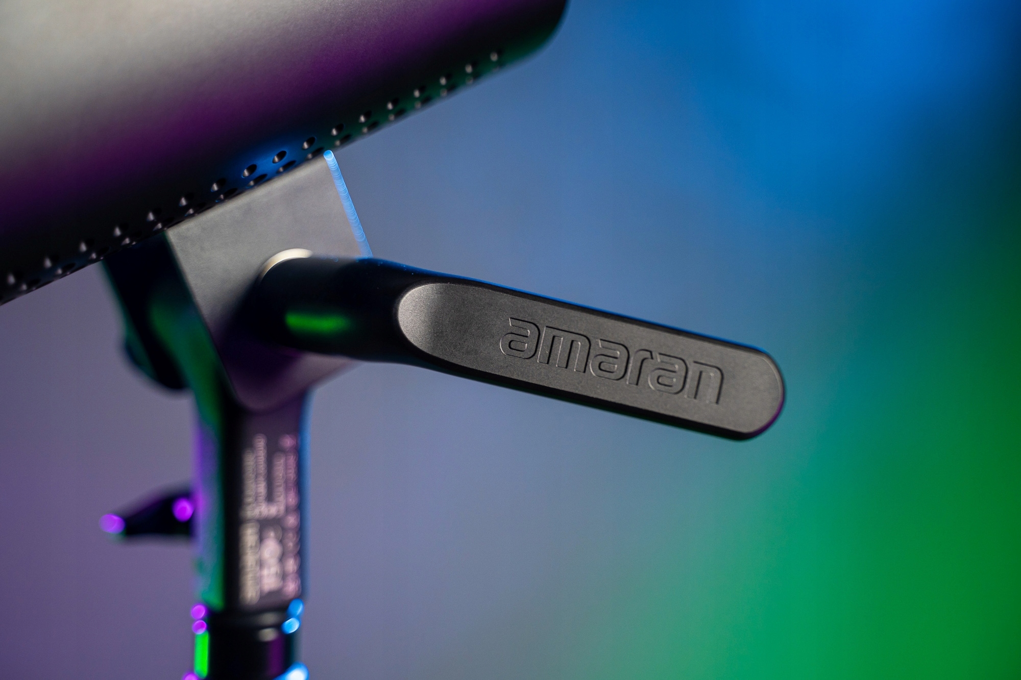 На задній панелі лампи є РК-екран і 2 ергономічні ручки. Досить лише одного руху руки, щоб плавно відрегулювати колірну температуру або встановити вибраний колір світла в палітрі HSI. Всю необхідну інформацію ви знайдете на екрані з підсвічуванням. Ви можете зручно змінювати відтінок, насиченість і яскравість (інтенсивність) світла. Не забув виробник і про корекцію G/M (Green / Magenta).