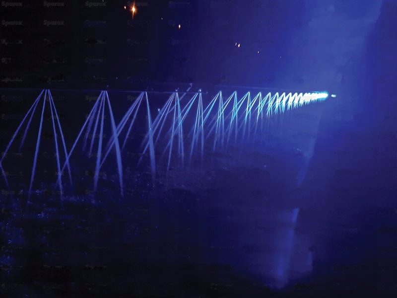 Синя світлодіодна робоча лампа, що освітлює штангу обприскувача