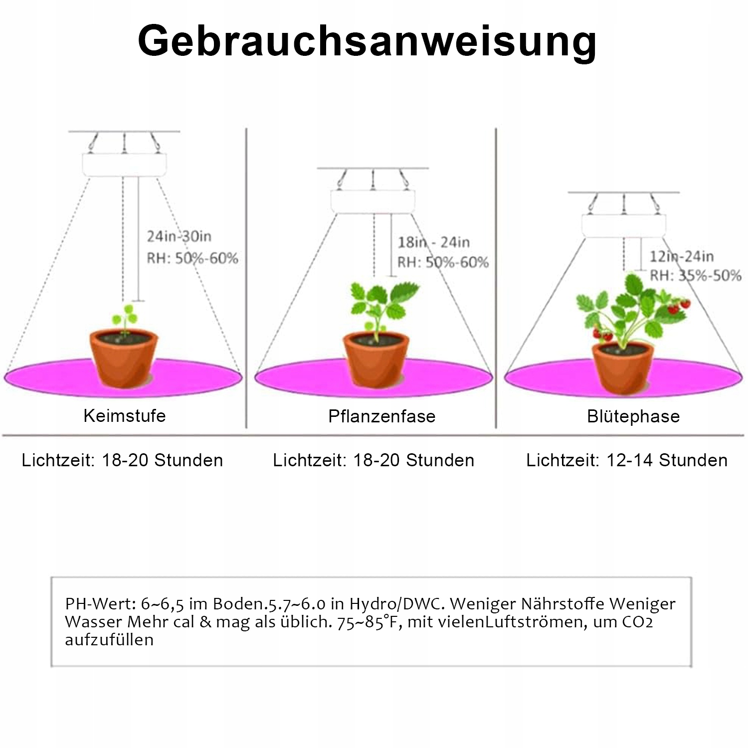 Це світло для росту випромінює різні довжини хвилі, щоб відповідати конкретним потребам рослин, таким як розвиток бутонів, цвітіння та скупчення плодів. Він достатньо універсальний для підтримки трав’янистих рослин, овочів, сукулентів, зелених квітів тощо. Регульовані режими освітлення дозволяють налаштувати освітлення на різні фази росту, від розсади до цвітіння.