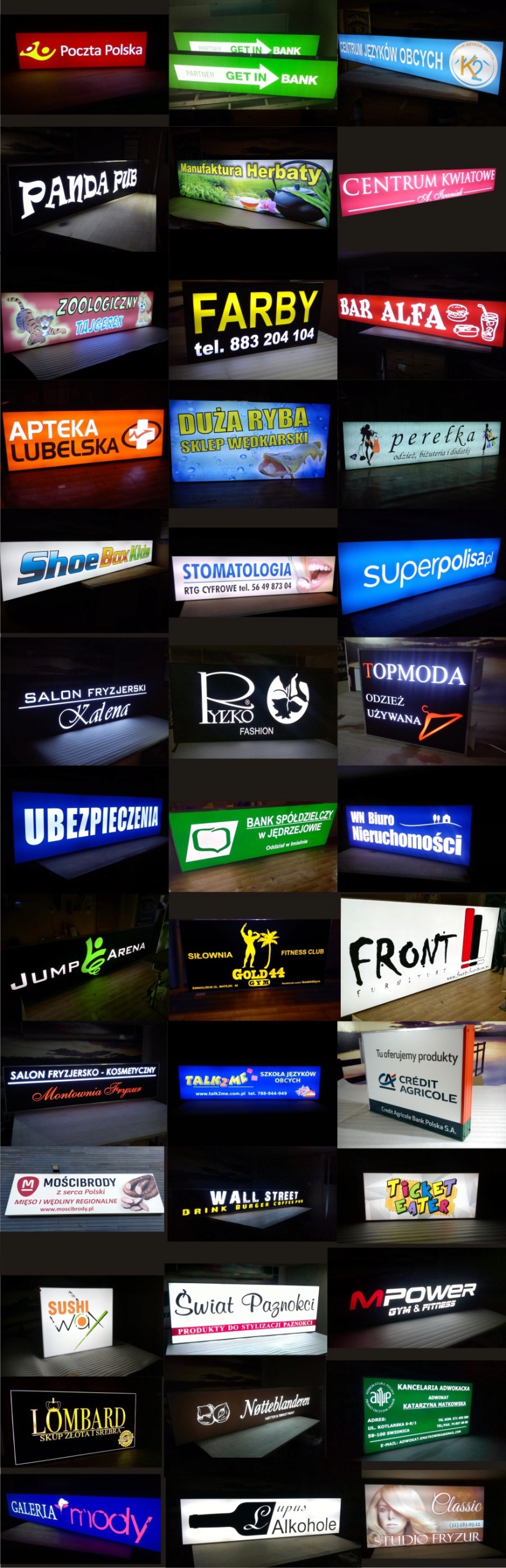 Двостороння світлодіодна рекламна коробка з друкованою або вирізаною на плотері графікою для зовнішнього та внутрішнього використання. Встановлення перпендикулярно до стіни - в комплекті є два тримачі - ми можемо встановити їх на коротшу та довшу сторони.