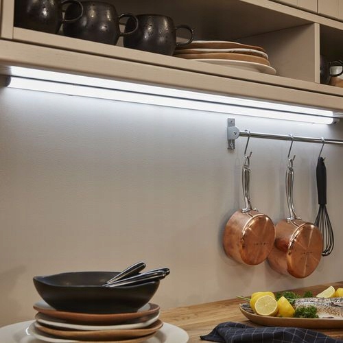 Світлодіодний підшафний світильник потужністю 9Вт нейтрального кольору світла. Призначений для освітлення робочої поверхні кухні, гардеробної, полиць магазинів і шаф. Може використовуватися як робоче та декоративне освітлення в залежності від місця установки. Світлодіодна технологія, яка використовується в лампі, не тільки зменшує споживання електроенергії, але й збільшує термін служби виробу. Світильник призначений для живлення безпосередньо від мережі 230 В, тому немає необхідності використовувати додаткові перетворювачі або джерела живлення. Оснащений перемикачем, розташованим на корпусі, що значно полегшує використання, двома видами шнурів живлення та набором ручок. Опалове покриття джерела світла надає світильнику привабливий зовнішній вигляд і робить світло приємним і без відблисків. За допомогою роз'єму, що входить в комплект, можна з'єднати кілька світильників послідовно.
