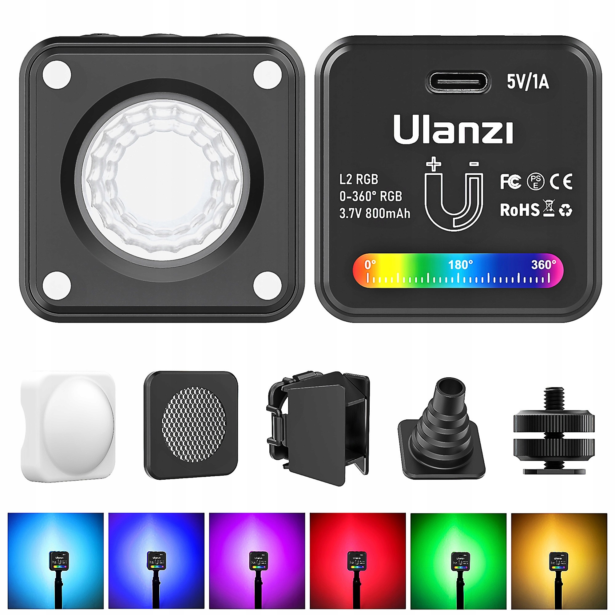 Ulanzi L2 - RGB — це мініатюрна світлодіодна лампа, яка важить як... одне яйце. Його можна легко помістити в кишеню або найменше відділення рюкзака. Це буде ідеальний вибір для людей, які створюють фото чи відео в мікро- та макро масштабі. Ви також можете використовувати його для підсвічування свого обличчя під час відеоблогів або відеоконференцій. Пристрій пропонує можливість змінювати колір світла в межах колірного простору HSI і 11 готових спецефектів. Він оснащений магнітом і внутрішньою різьбою 1/4 дюйма. У комплект лампи входить ряд модифікаторів світла (розсіювач, сота, прожектор і ворота) і адаптер для холодного башмака.