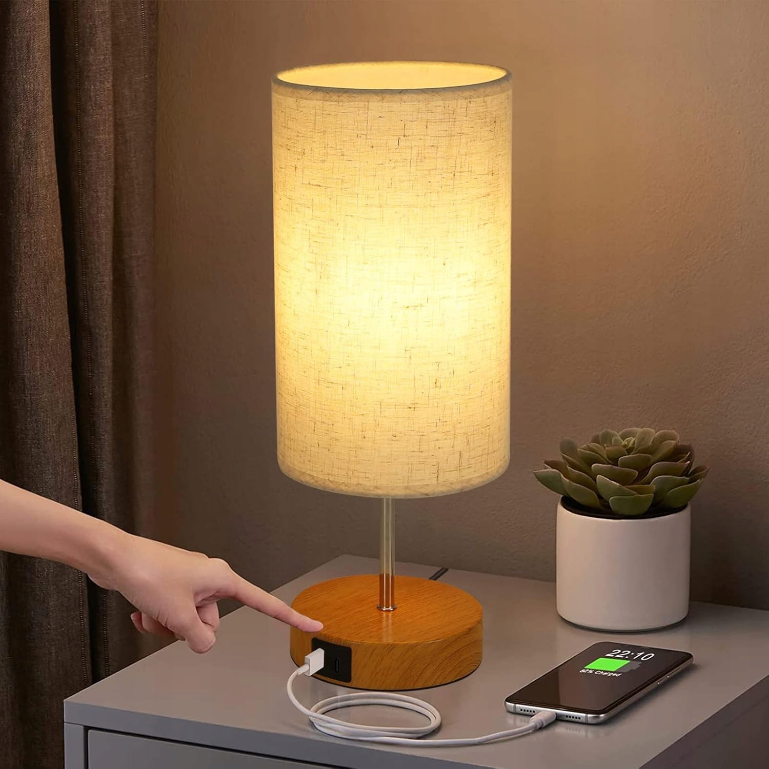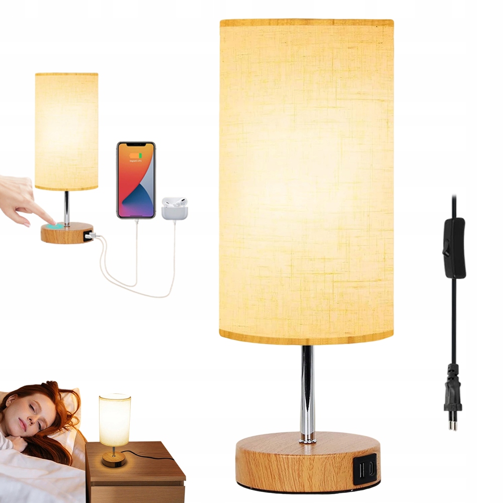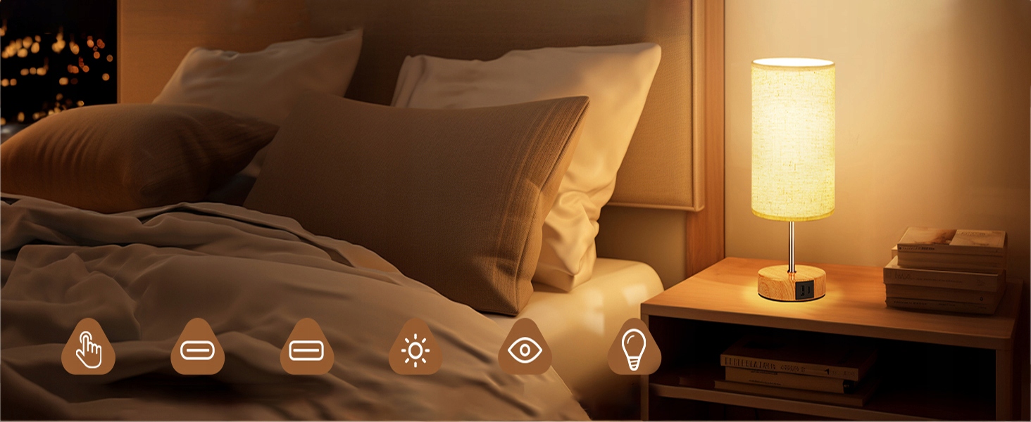 Нічна лампа з функцією дотику та зарядки USB A+C Порти Лінена базової базової лампи для спальні, Салон набір)