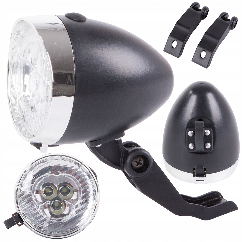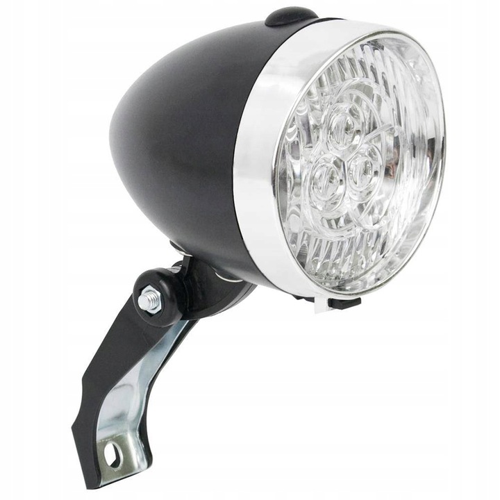 стильна велосипедна лампа в ретро -стилі забезпечить вам не лише освітлення та безпеку під час нічних атракціонів, але й прикрасить свій велосипед. Лампа була зроблена чорним кольором з додаванням хромованого елемента.