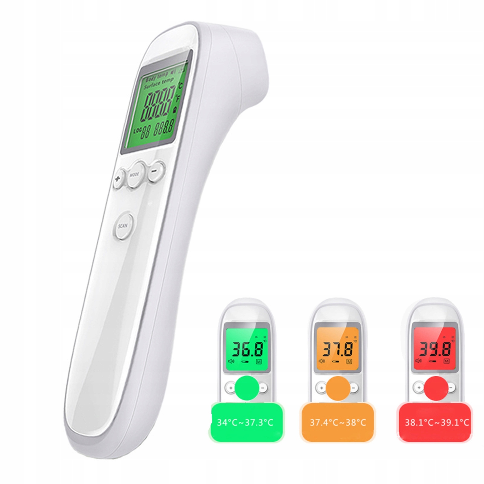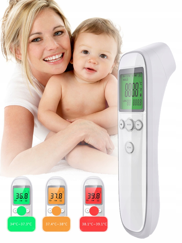 неконтактне вимірювання: Безконтактний інфрачервоний цифровий термометр безпечніший . Він може виміряти температуру тіла, не торкаючись лоба (відстань вимірювання 3-5 см). люди похилого віку. Два режими вимірювання температури: модель тіла людини (температура тіла людини), об'єктна модель (вода, молоко, кімнатна температура тощо)