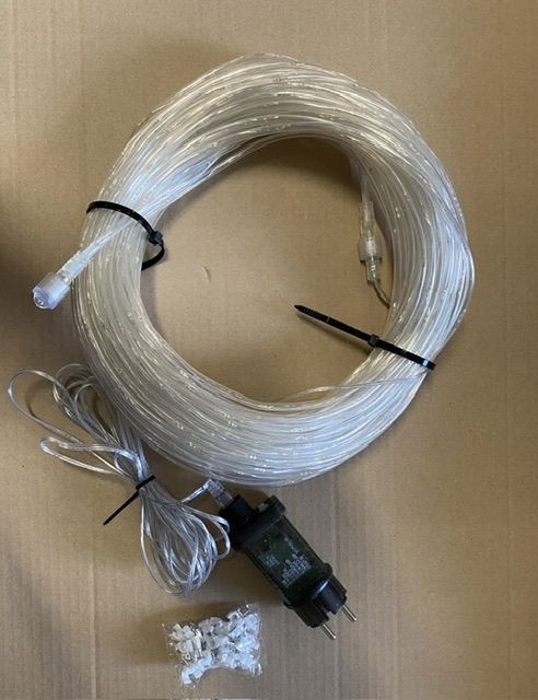 Супер світлого шланга: 30 м зміїне світло + 5 м кабель живлення, кількість світлодіодів: 600 світлодіодів з теплим білим кольором. Простір між світлодіодами: 5 см, діаметр шланга: 5 мм, електроенергія. Він також може поєднуватися з розширенням.