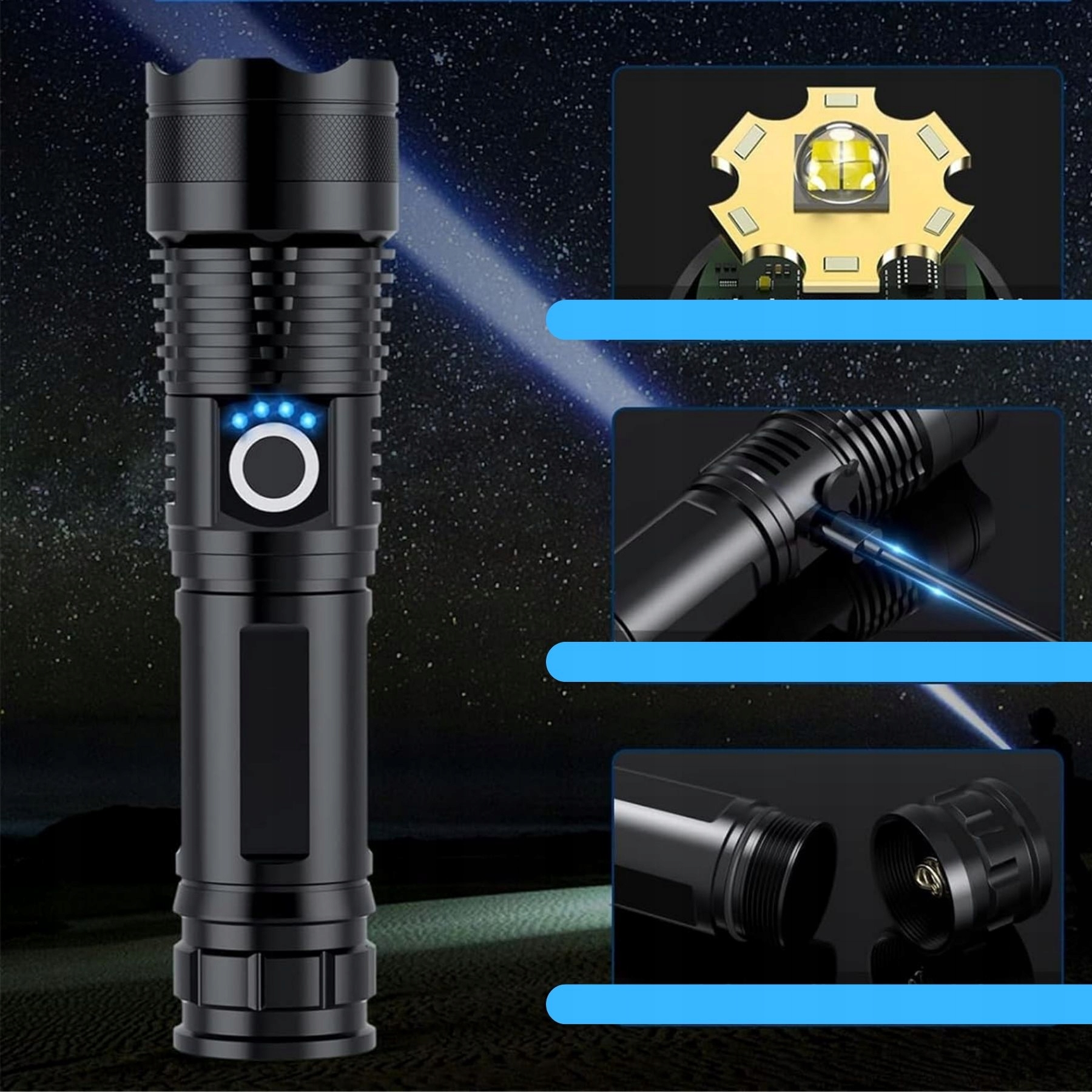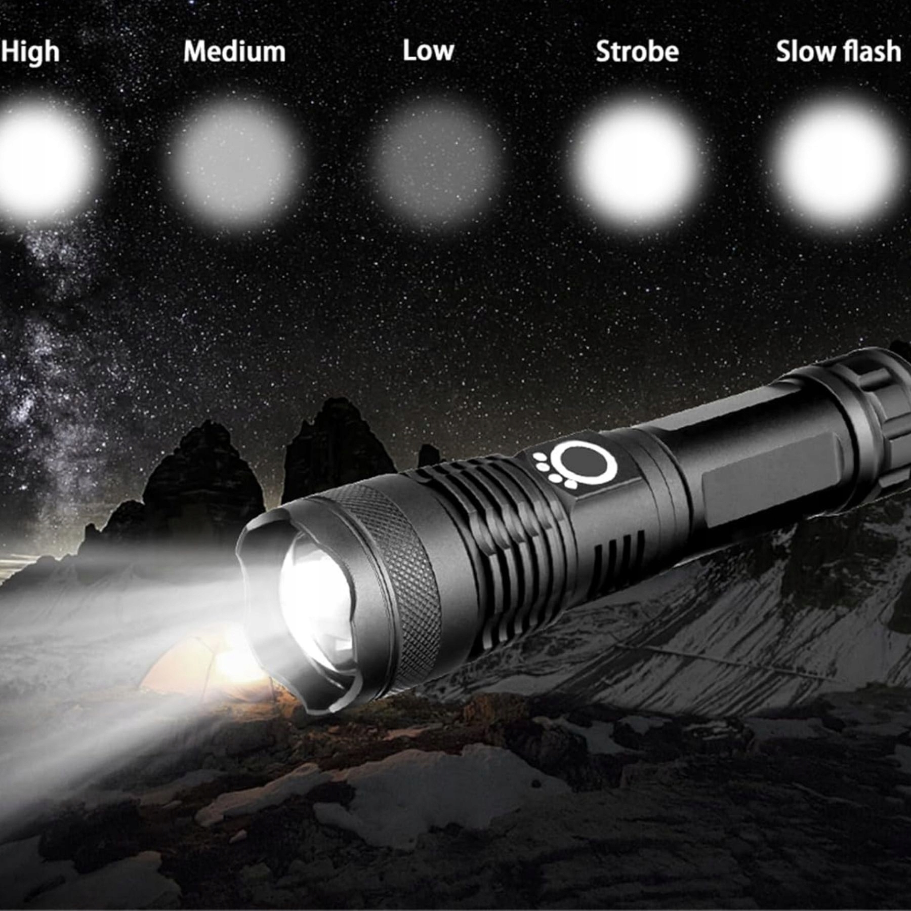 Потужний тактичний світлодіодний ліхтарик XHP90 ліхтарик — це універсальний інструмент, створений з думкою про виживання, туризм, роботу та щоденне використання.Висока потужність освітлення, міцна конструкція та функціональність роблять його ідеальним вибором також як подарунок.