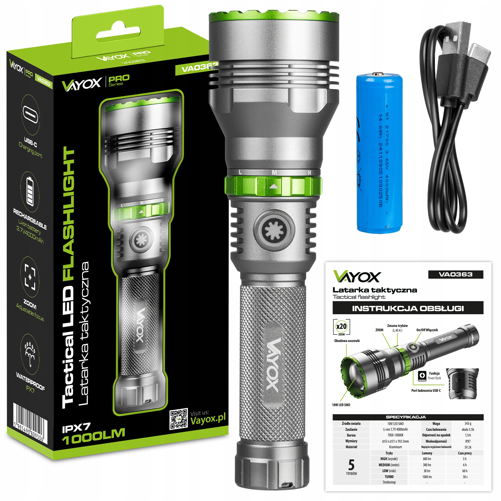 світлодіодний ліхтарик Tactical Zoom USB-C-CX7 1000LM Акумулятор Zoom Pro Vayox Lamp