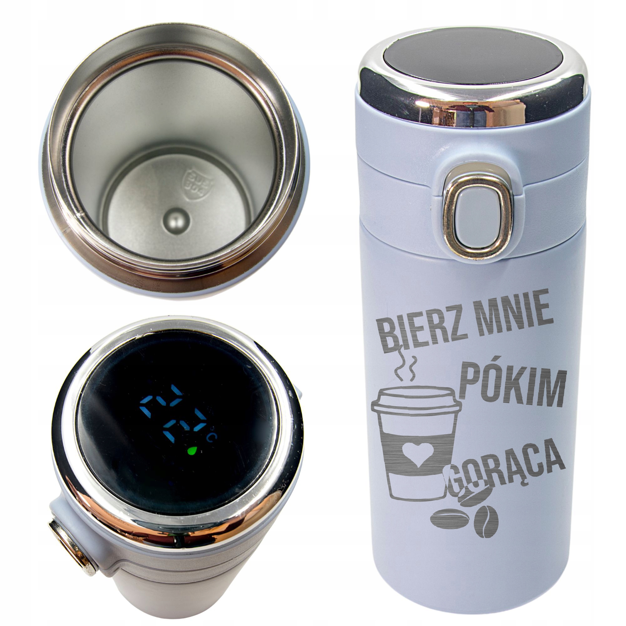 персоналізована теплова кухоль - термос із світлодіодним температурним індикатором та гравіюванням