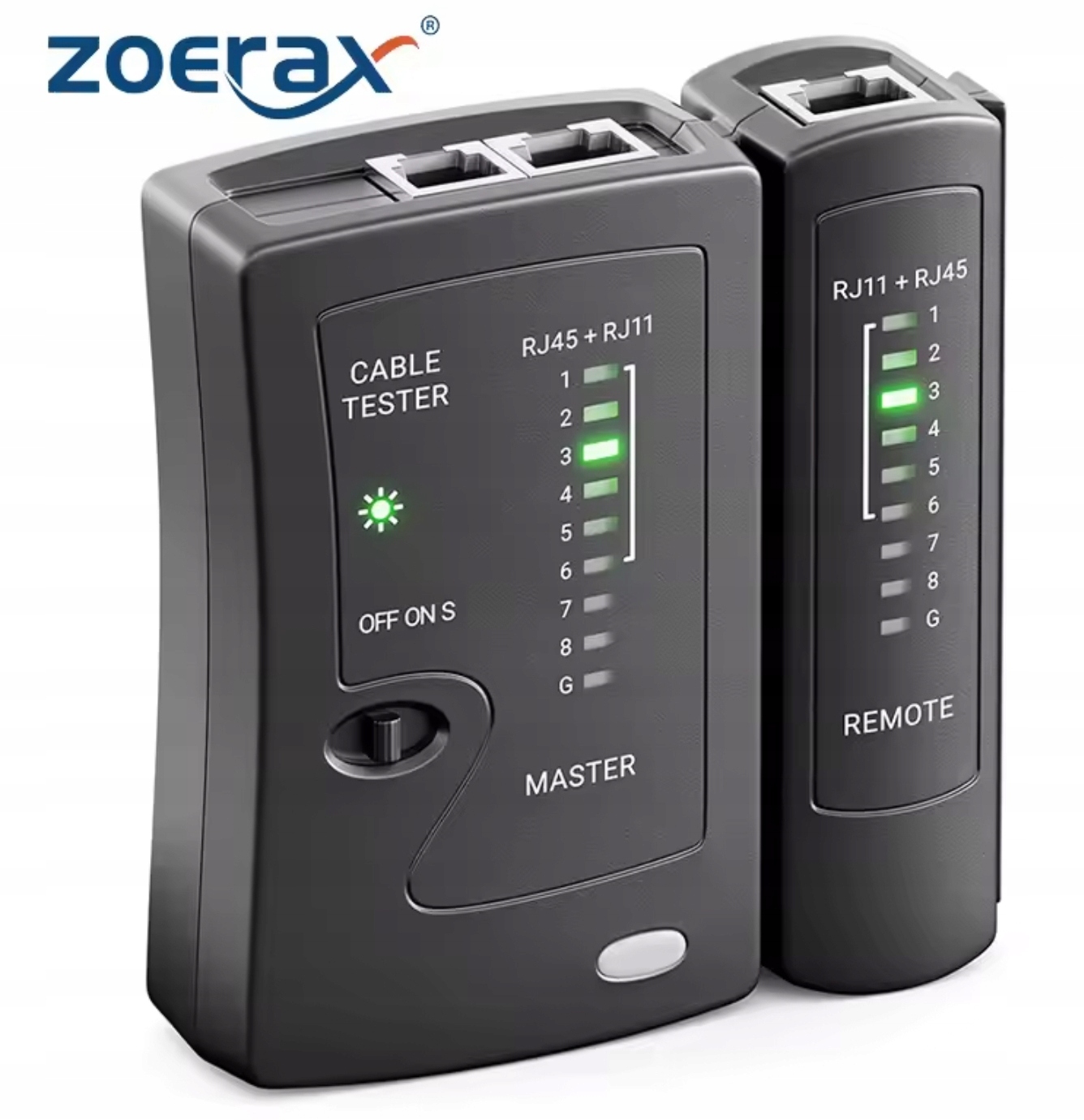 Увімкніть джерело живлення (положення ввімкнено - безкоштовне автоматичне сортування, s - швидко). Підключіть кабель, закінчений вилкою RJ45, до випробувальних гнізд обох модулів. Індикатори основного модуля повинні відображати послідовність від 1 до G ( g - освітлюється лише у випадку екранованої крученої пари). Якщо тестований кабель функціональний світлодіоди в модулі передавача та приймача освітлюються в наступному порядку: 1 -2 -3 -4 -4 -5 -8 -8 -8 -g . У повороті перетворені, наприклад, 2 та 4 Цей світлодіод освітлюється в наступній послідовності:
